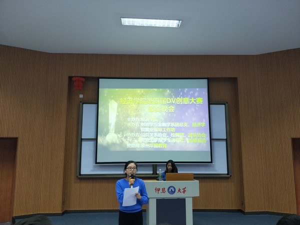 大赛由吴老师发表致辞拉开帷幕,接着,各队播放参赛视频并介绍视频所表达的主题以及分享拍摄视频的花絮。其中,“用心拍摄DV队”的视频讲述的是某大学生刻苦练习厚积薄发的励志故事。“划船不靠桨队”则是用大学生沉迷手机的例子,引起同学们对如何合理利用手机的思考。各参赛队伍所透露出主题都具有青春正能量,视频里的趣事也引得在场观众笑声连连。最后,赖桂全老师对各个参赛队伍进行了点评,希望全体同学能够从参赛队伍的视频中获得启示,更好地展现出大学生积极向上的精神风貌。