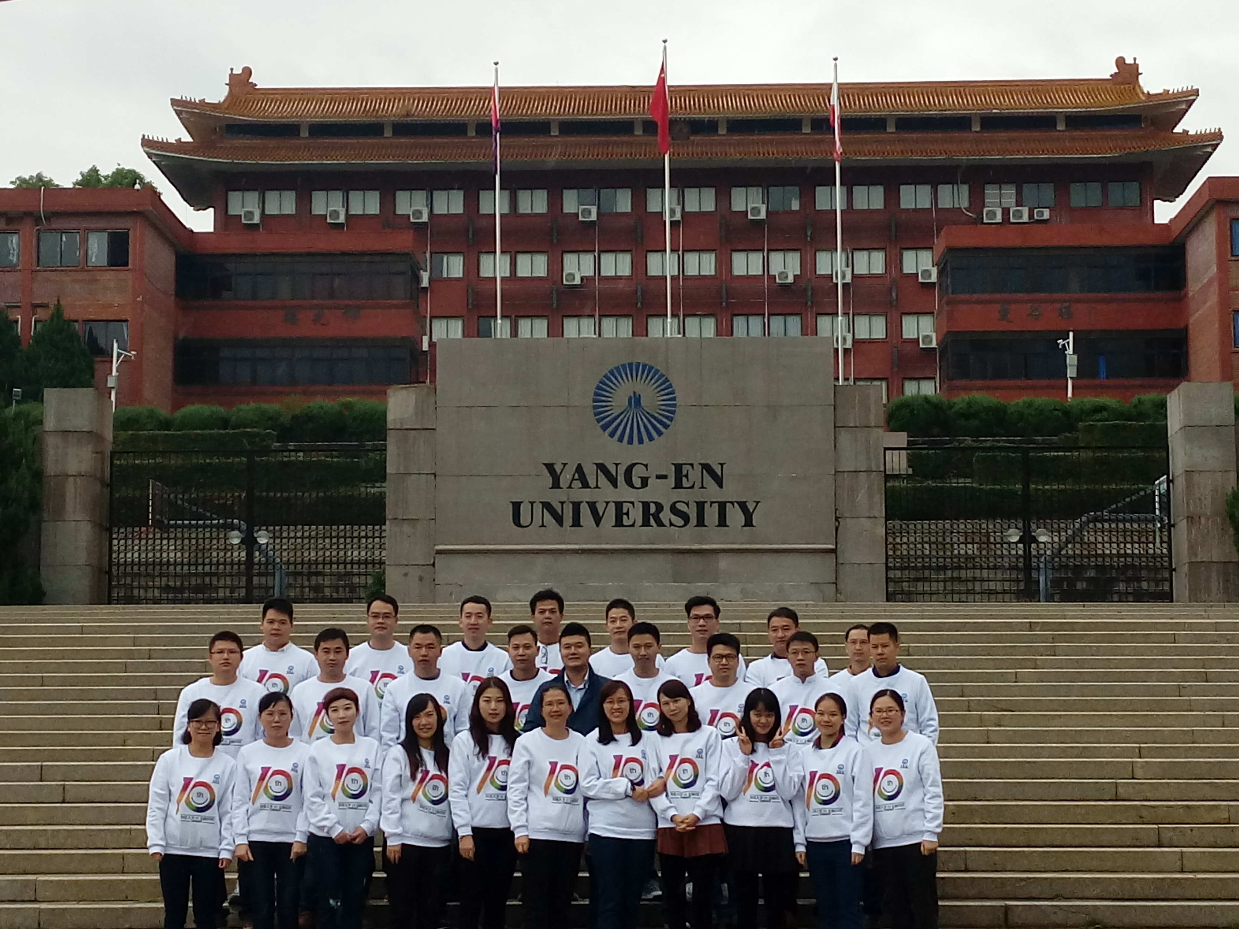 (图为第一教学区正门前合照留念)