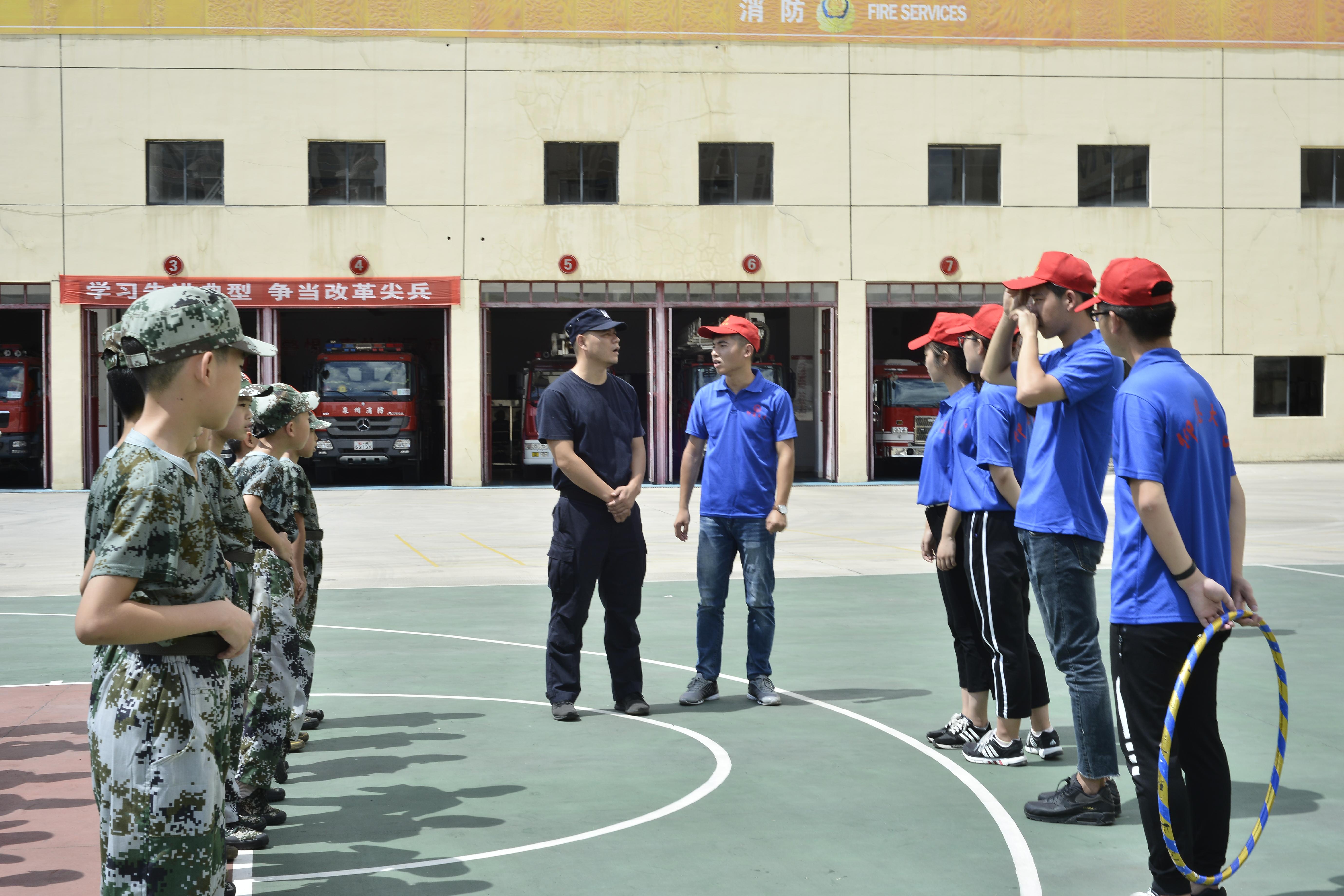 7月16日,安溪县消防大队举行了安溪县第八届少年军校启动仪式,yl23455永利集团赴安溪暑期实践队协同福建农林大学安溪茶学院志愿者参加“少年军校”体验活动。
