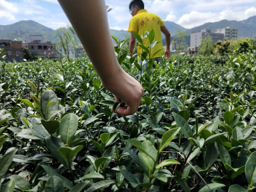 (图为溯源实践队员参与采茶)