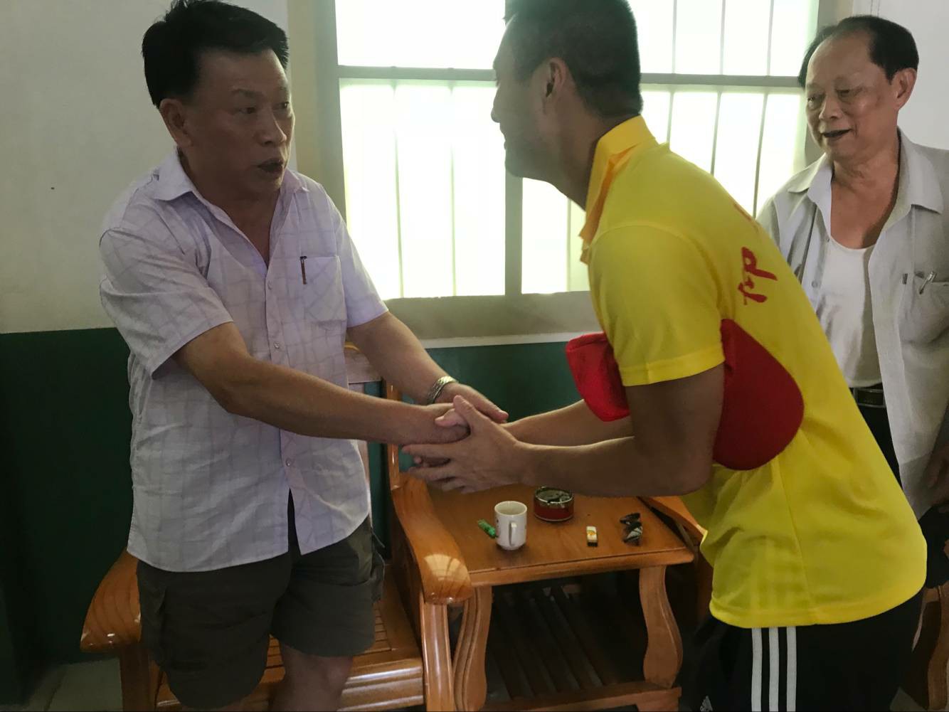 (图为洪森原老师向老党员致谢)