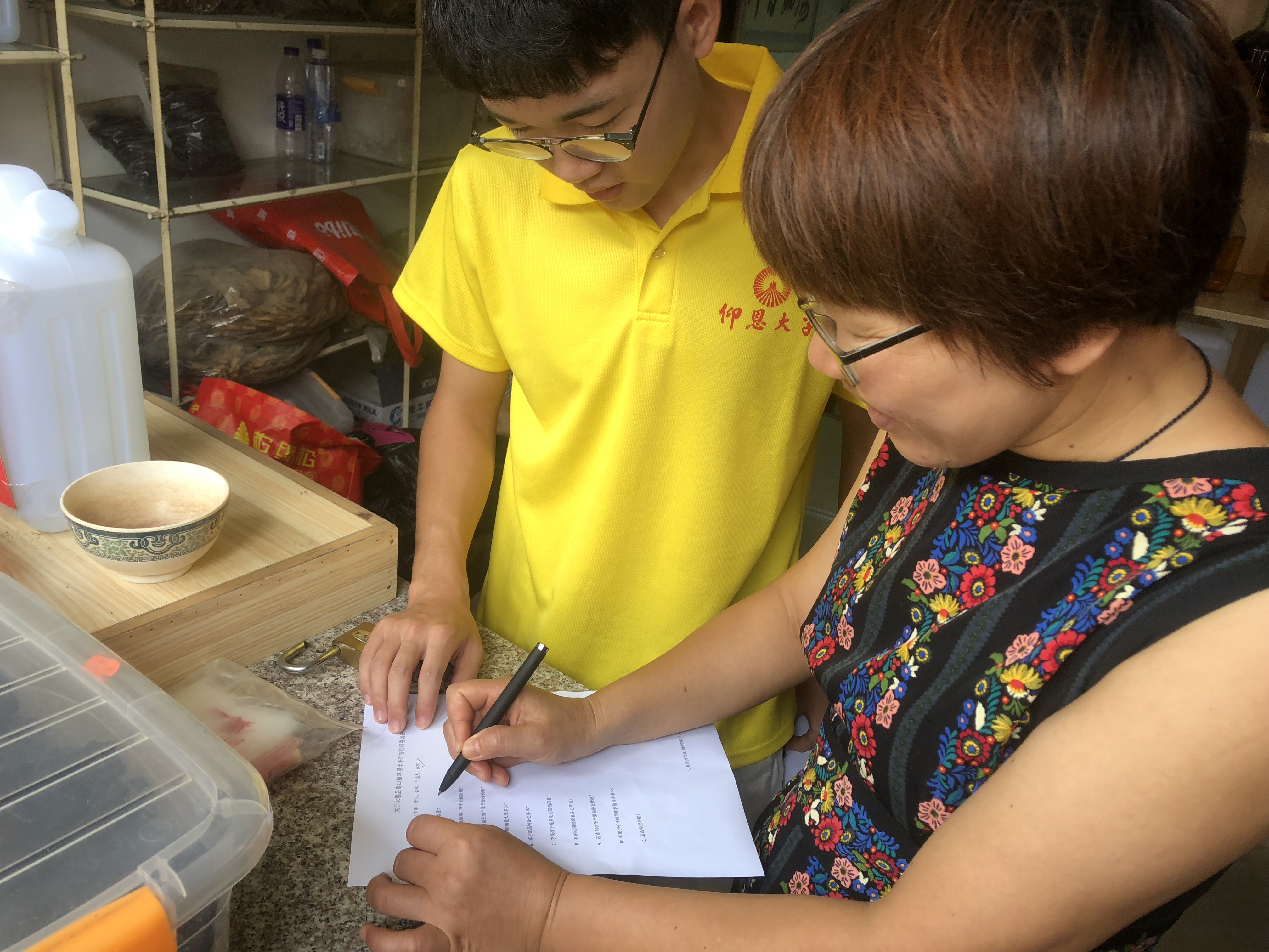 (图为当地居民为实践队员填写问卷调查)