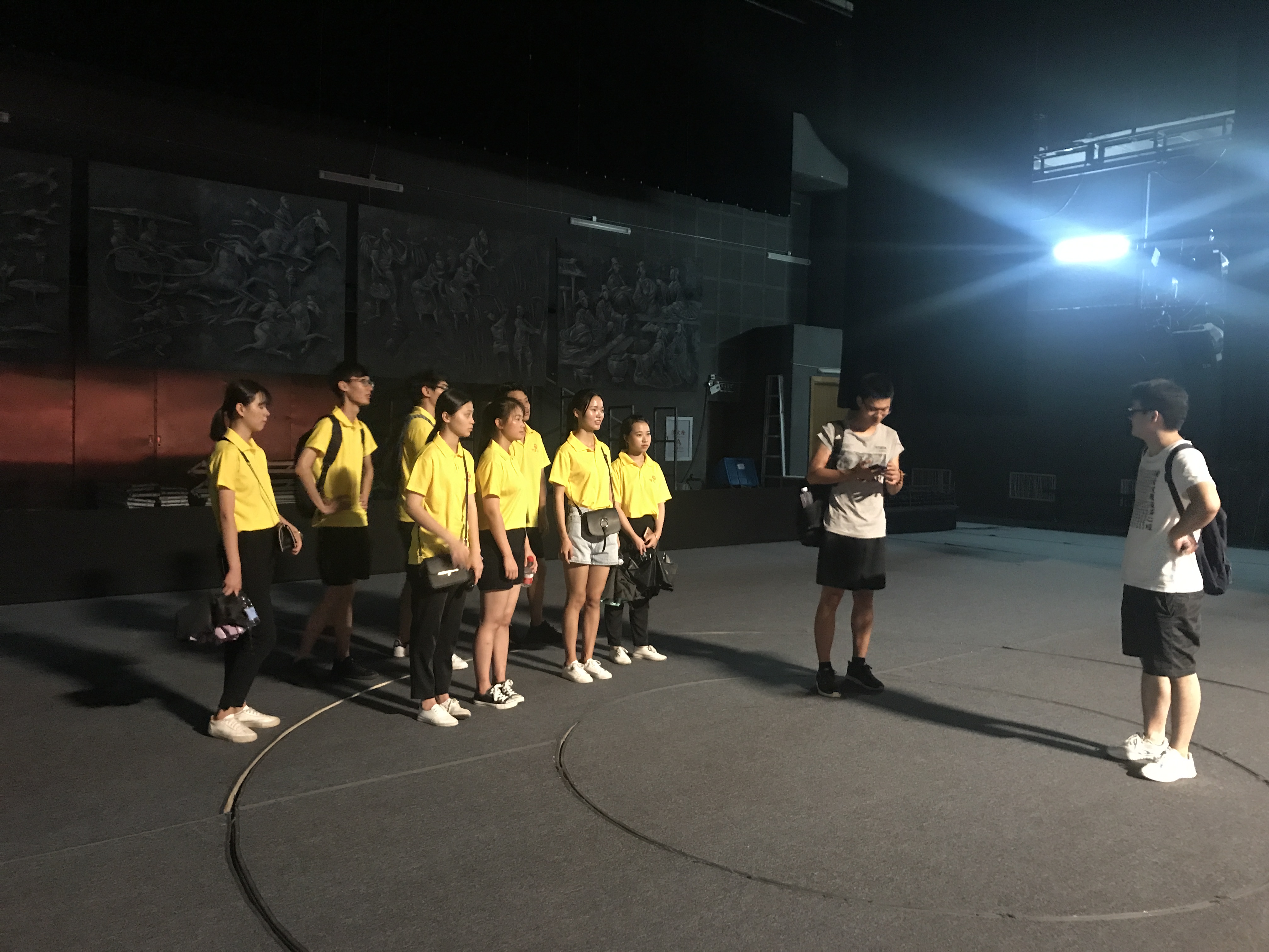 (图为实践队员感受舞台氛围)