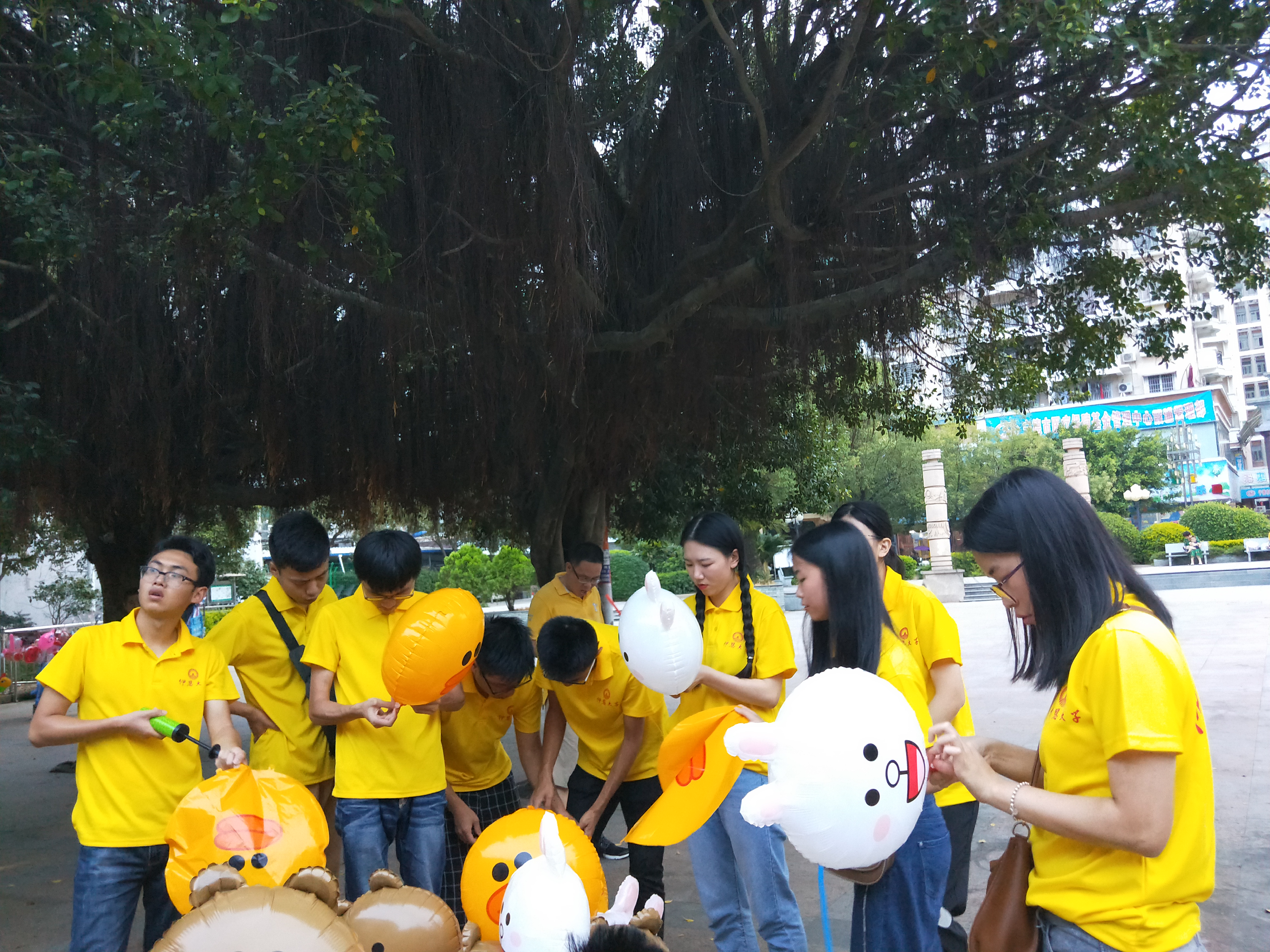 由于天气原因,实践队将义卖分为两次进行。前期,准备了动物图案的气球以及各式各样的干花。实践队进行分工,男生搭帐篷、搬运桌子以及为气球充气,女生进行干花的裁剪,以及气球的固定。实践队租了音响和麦克风,在音乐的感染力下,吸引了不少的群众围观和购买义卖商品。在得到每一笔善款时,实践队都会告知买者,筹募的资金将用来转换物资,慰问当地的贫困户。义卖结束后,实践队到“不舍客栈”进行义工,帮忙打扫楼梯和擦扶梯。同时,实践队员为旅客讲解了当地的旅游地点及特色。