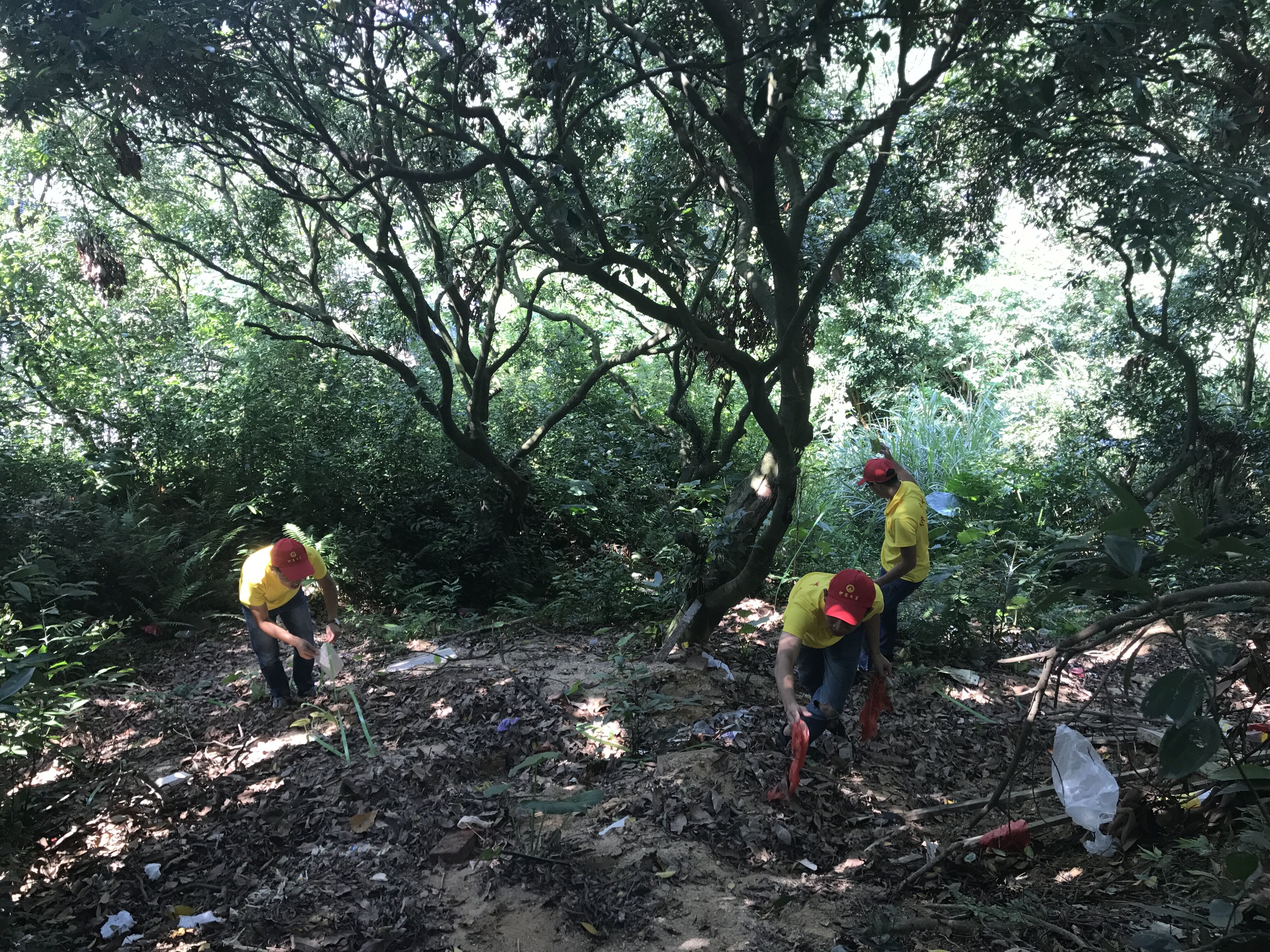 图为实践队员进行垃圾清理