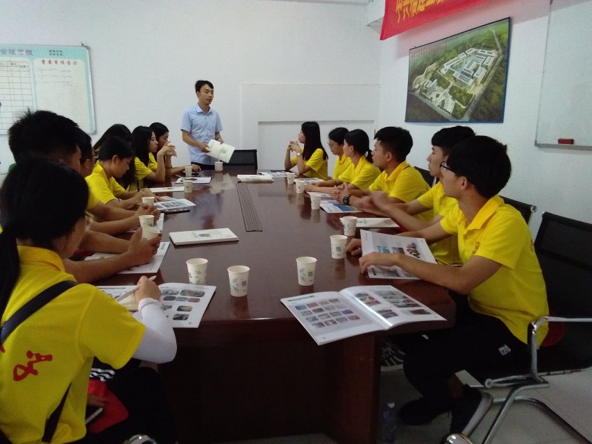 (图为陈洪主管向实践队员介绍公司经济发展现状)