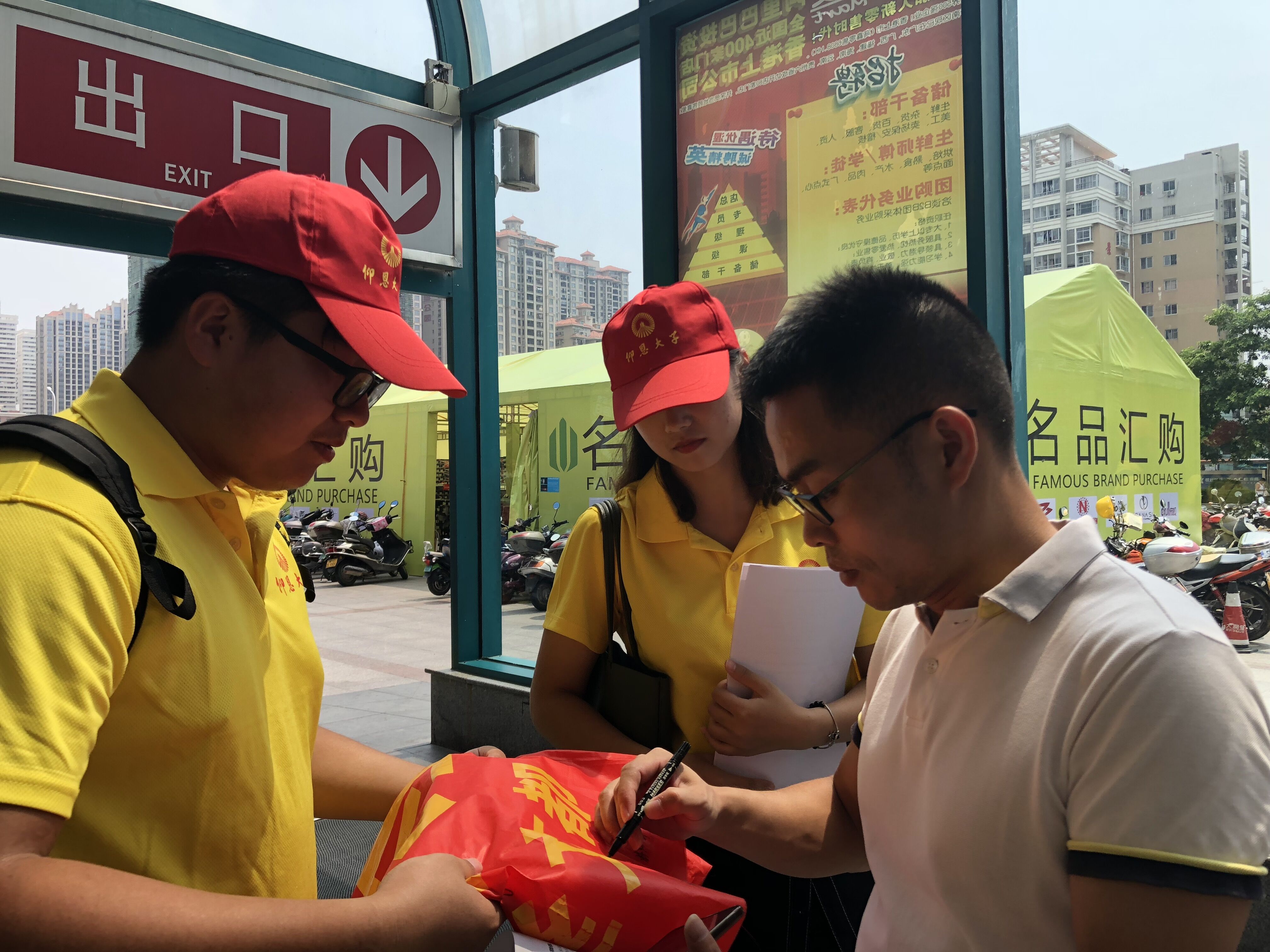 (图为路人在横幅上签名)