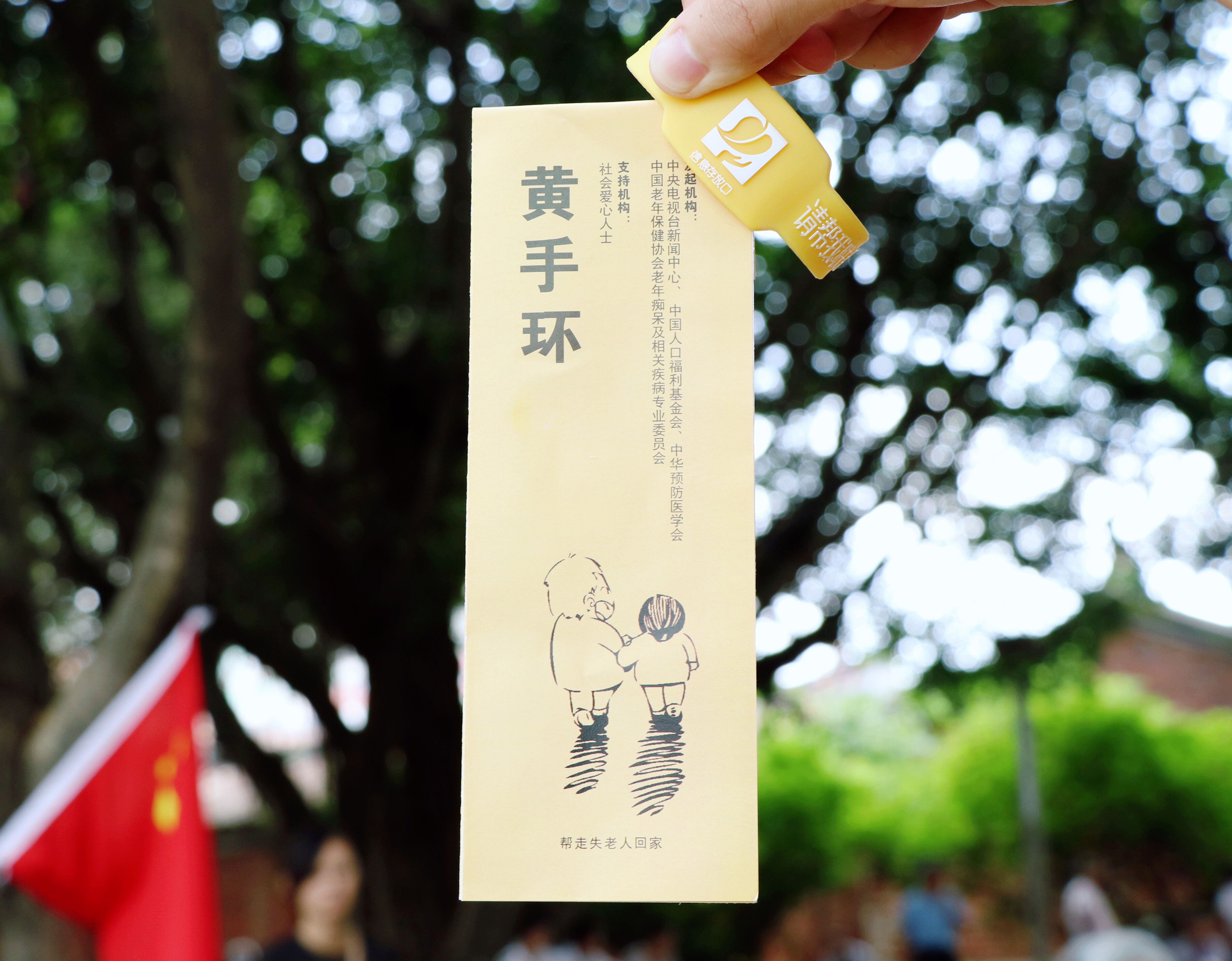 黄手环公益活动旨在患有阿尔茨海默病的老人找到回家路,让年患者迷路和失联时,热心的路人或志愿者们能够通过黄手环内的信息他们家人们取得联系,将他们安全送回家。yl23455永利集团自2016年组织暑期实践队伍参与协办第一届黄手环活动迄今,已是连续第三年组织实践队伍协办。