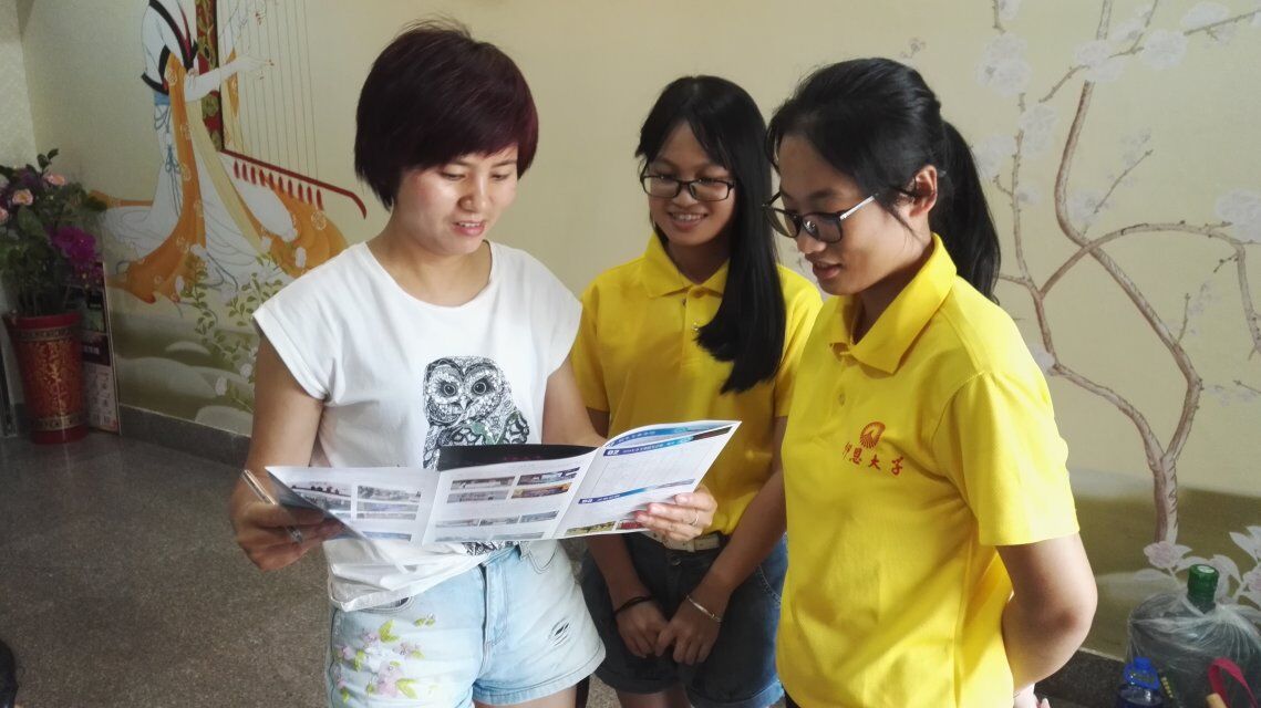(图为实践队员向学生家长介绍yl23455永利集团)