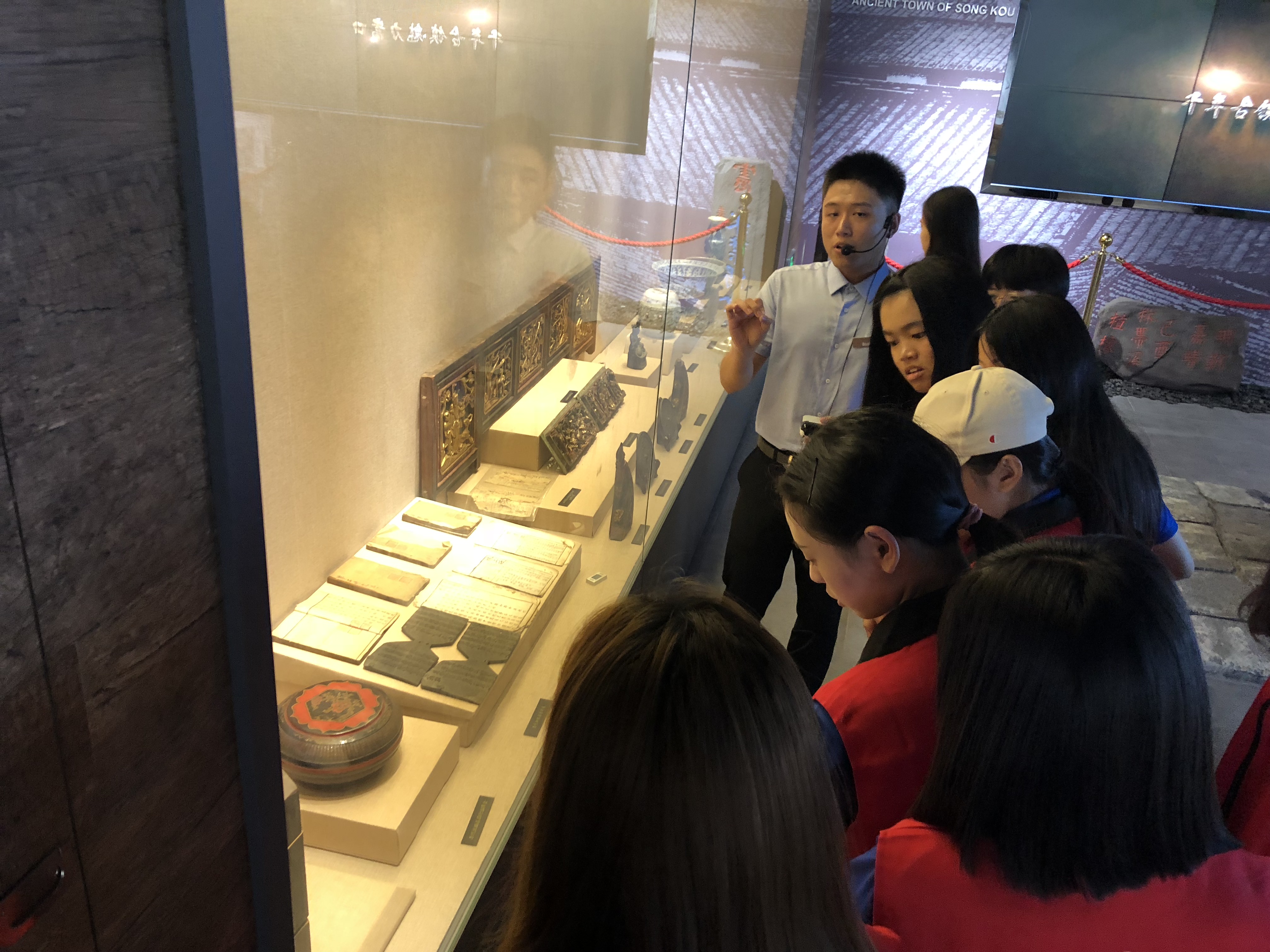 (图为博物馆工作人员为实践队员讲解历史文物的由来)
