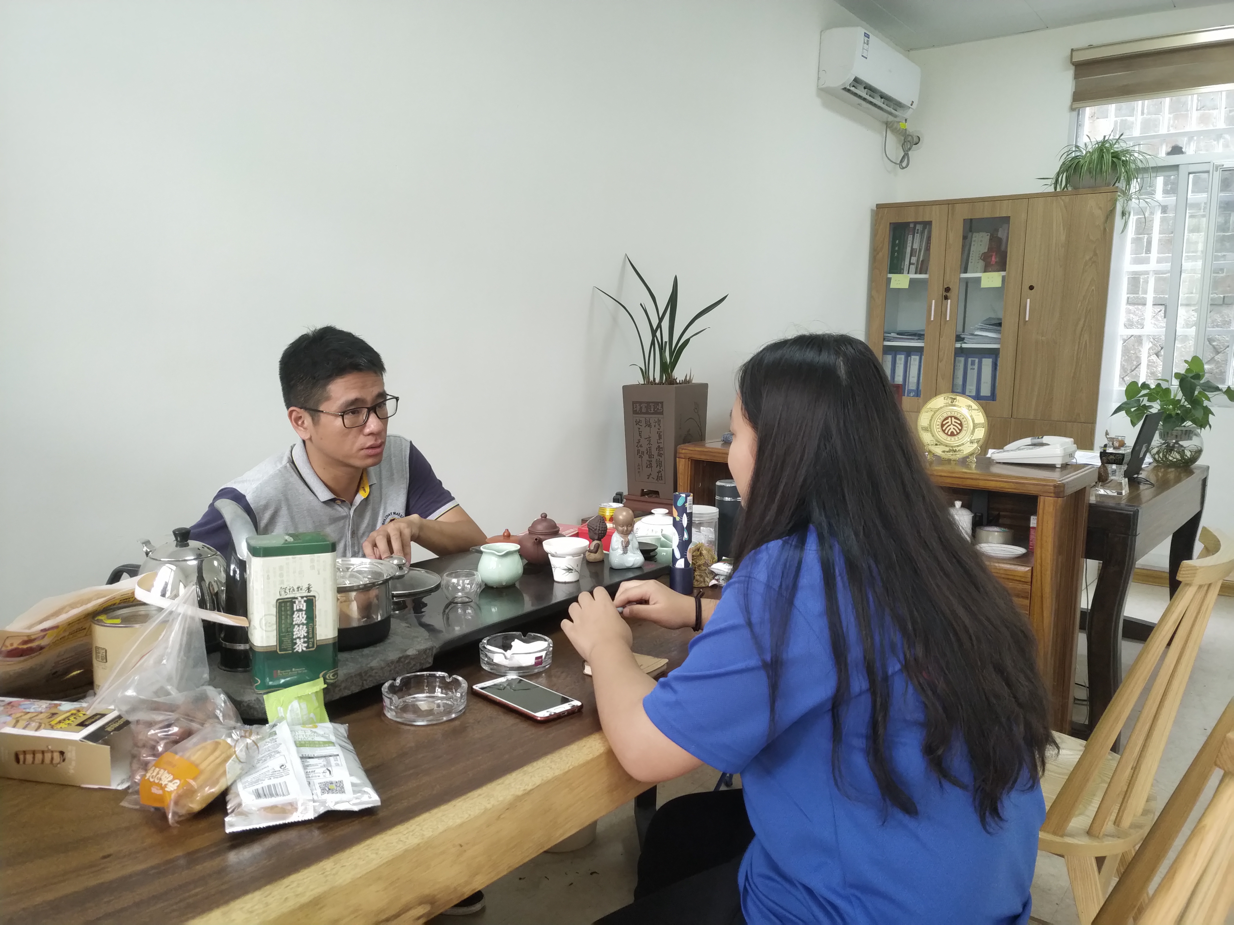 (图为实践队队员与负责人黄玉琴进行交流)