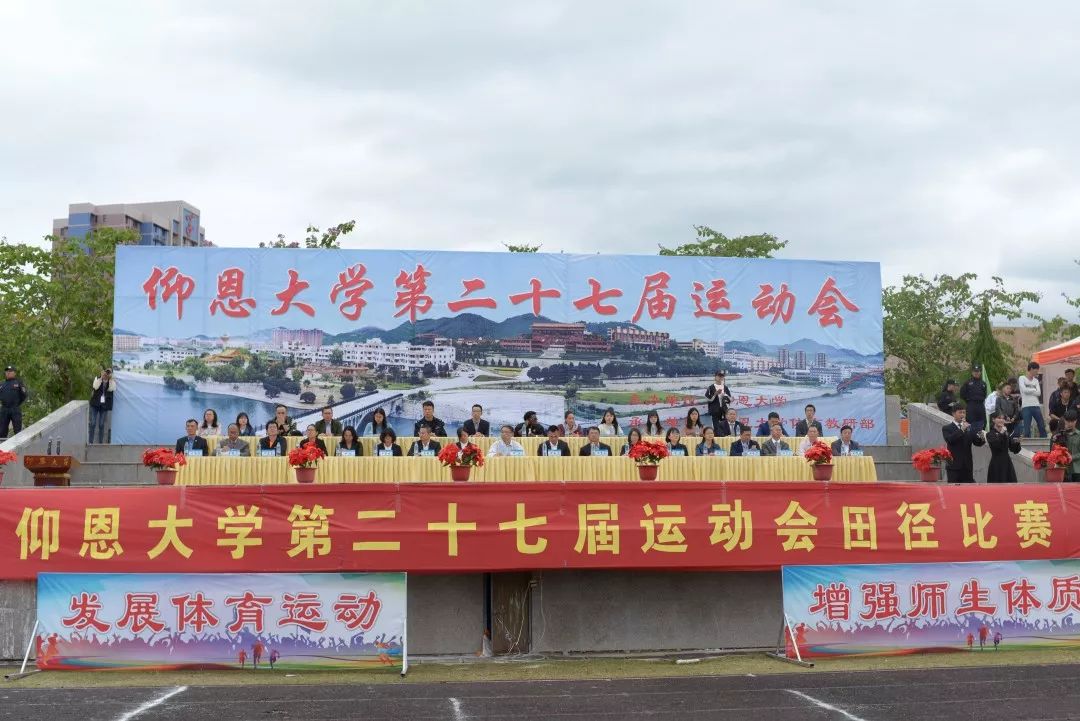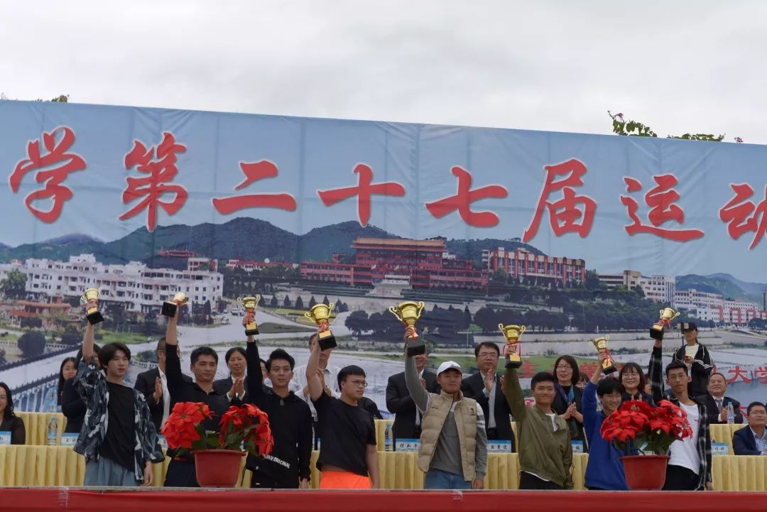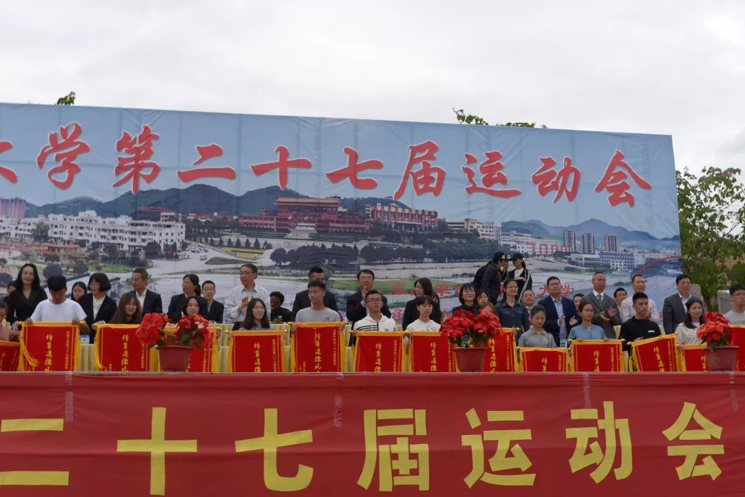 11月17日上午,我校第二十七届运动会闭幕式于第三教学区体育场举行。在校校领导,各院(系)、部门负责人,外籍教师代表等出席了闭幕式。此次运动会,全校近2800名师生参加了篮球、排球、足球、网球、创意啦啦操、跳绳、拔河、田径等八大项47个小项的比赛。