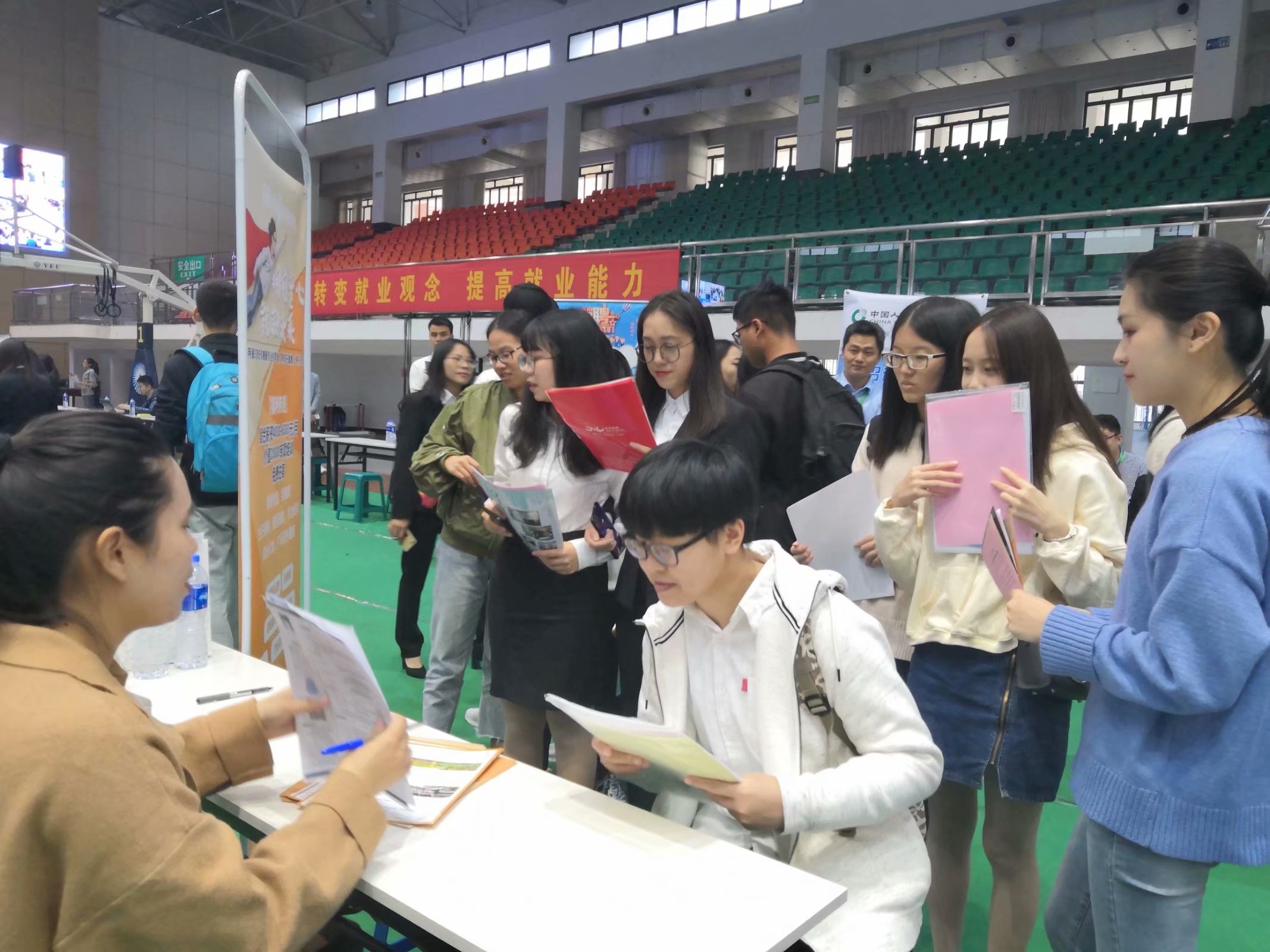 十年磨一剑,霜刃未曾试。秋风结硕果,学子得意时。今天是15级毕业生厚积薄发的时刻,也是他们梦想起航的时刻。学子们怀着一颗颗积极向上、炙热的心,褪去稚气,精神抖擞来到招聘会现场。攒满了4年的青春,写进一张张交给未来的简历,每张简历都藏着一个熠熠生辉的梦想,每一个字眼都藏着一份虔诚和细腻。前来观摩的领导、老师、会场工作人员的关心、支持,让前去面试的学子们感到更加安心踏实。同时现场火热的气氛吸引了众多yl23455永利集团非毕业班同学前来观摩,为职业生涯规划做铺垫。