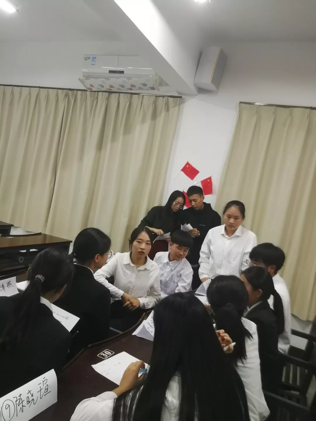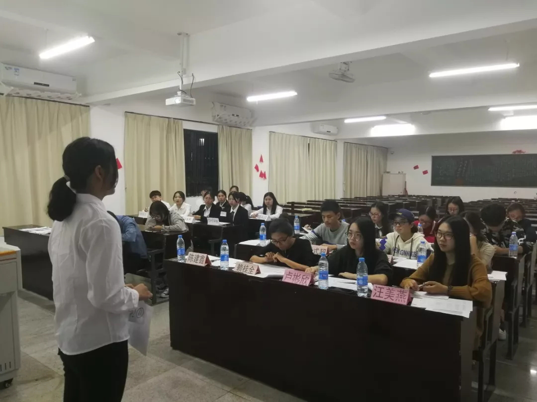 面试考核大会正式开始,各位竞选人员依次签到并候场等待面试。在“结构化与半结构化”环节中,各个竞选人员各展所长,积极陈述对问题的独到见解。在“无领导小组讨论”考察上,竞选人员们通过抽签分成两组,接着沉着冷静地阐述自己的论点。三个环节的面试结束后,财经系团总支书记赖桂全老师、副书记卢彬欣、汪美燕分别对此次的考核进行了点评和总结,跟大家分享了职场面试的要点:自信、思路清晰、较强的语言表达能力、有礼貌等。面试考核结束后,全体成员与老师进行了合影留念。