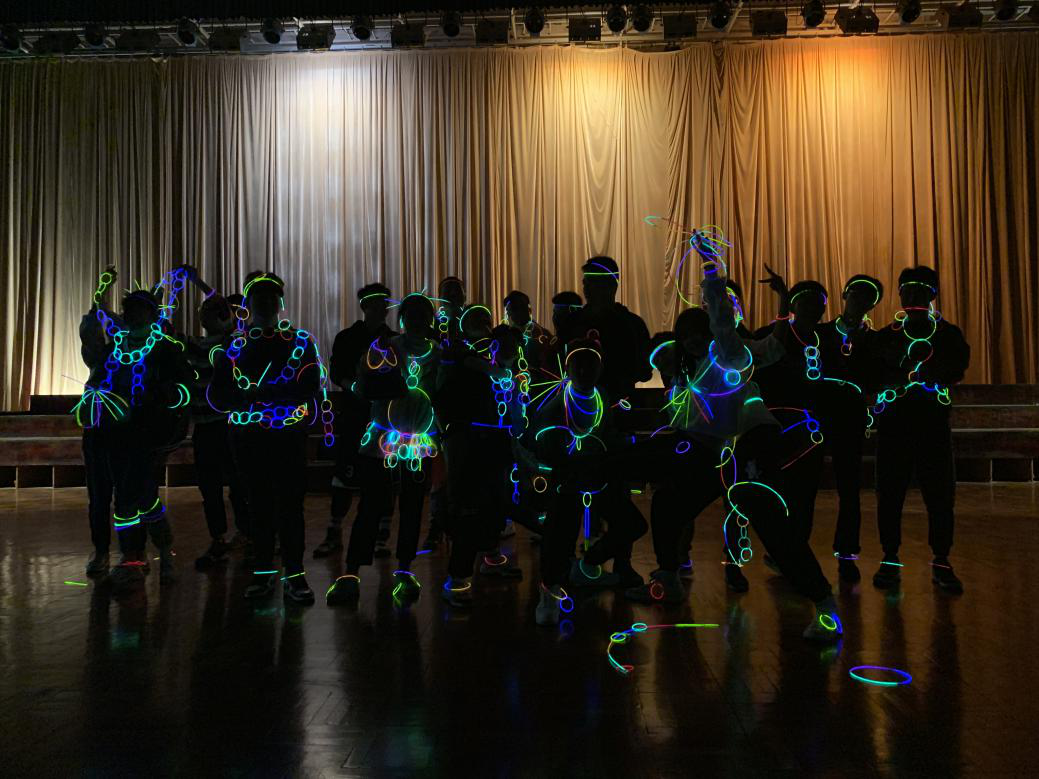 活动伊始,同学们在红色横幅签名。随后,新生歌手赛冠军李子茜同学带来歌曲,以及八个新生班级各具特色的节目,现场氛围逐渐热烈。紧接着是游戏大比拼环节,各参赛队伍使出浑身解数,力争佳绩。同学们佩戴五颜六色的手环,开始夜跑活动,观众们呼声雷动。最后,同学们利用荧光棒创意走秀结束了本次活动。
