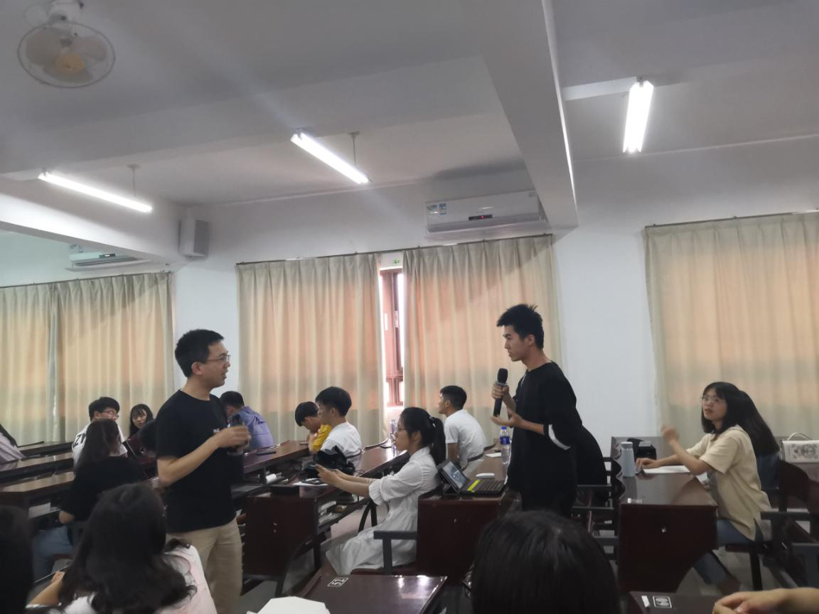 (图为褚锦灿老师讲解创业计划书注意事项) 活动开始时由褚锦灿老师介绍“互联网+”创业大赛的背景以及参赛的注意事项,同时分享创业计划书的写作要领。讲解结束之后进入了提问环节,同学们纷纷提出自己对“互联网+”比赛的疑惑,褚锦灿老师耐心地答疑解惑,并对提出的问题进行思维拓展,同学们听完受益匪浅。活动的最后由何丽玲老师和赖桂全老师进行发言总结。赖桂全老师鼓励同学们积极参加“互联网+”比赛,争取在大学期间多尝试多挑战。