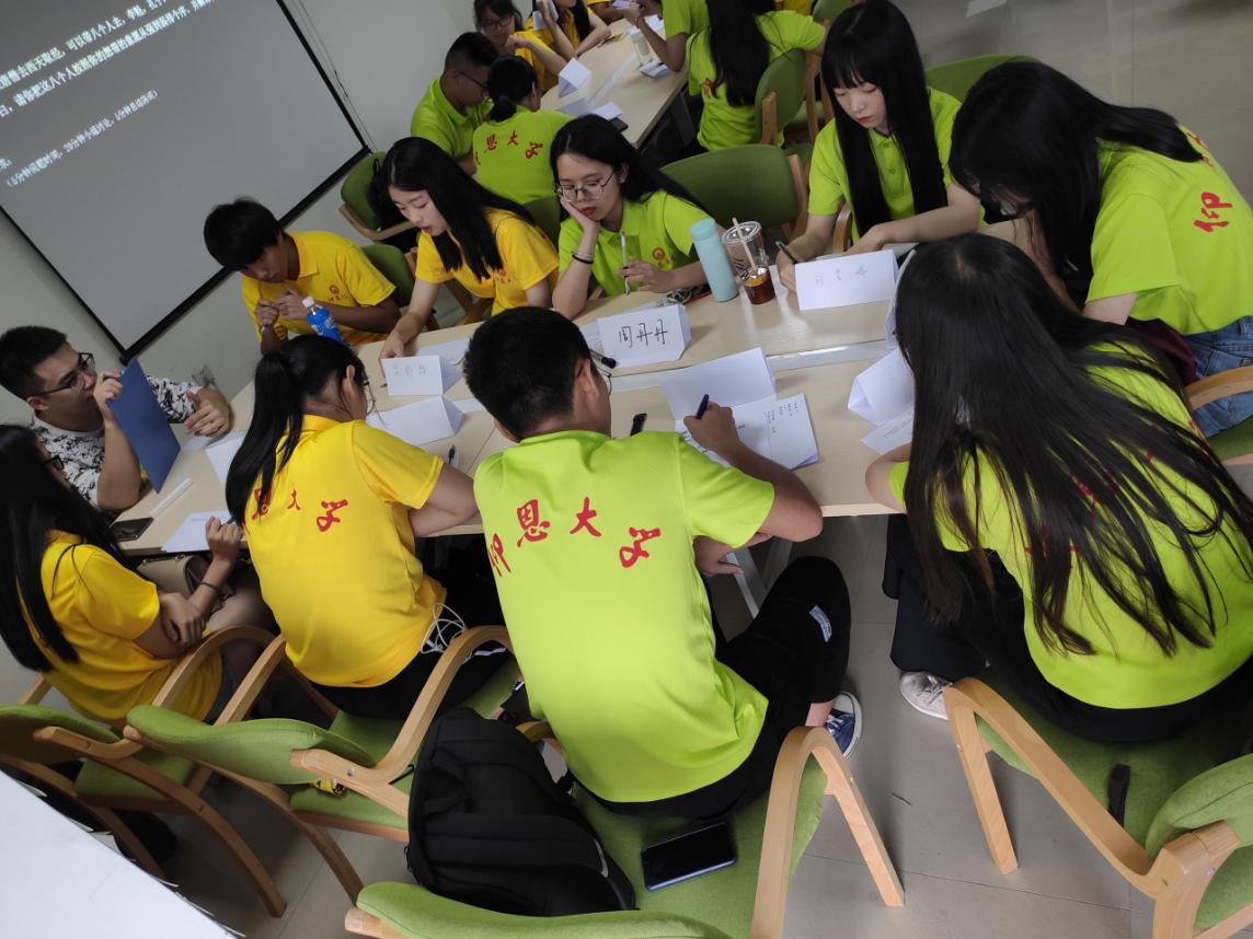上午9时许,海川实践队全体队员们抵达实践地,海帆职场导师小新老师热情地接待了队员们。随后,小新老师详细地介绍了公司的发展历程以及如何共同开展大学生职业规划体验式教学的课题。会议上,队员们了解到公司的企业文化以及运营理念、活动概况,并根据不同项目的特点,分成四个小组,进行分组讨论与研究。