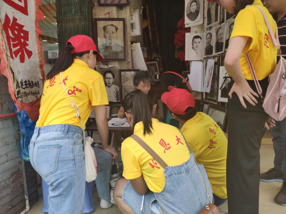手工艺人热情接待实践队队员,并向他们介绍碳精画的发展历史。同时队员们还积极向她提问,内容包括碳精画的艺术价值,以及它与素描、油画等的差别等问题。手工艺人一一解答了队员们的问题,并表示非物质文化遗产的传承需要新鲜的血液,希望年轻人能继承与发展这个手艺,而经济的融合需要有相关人员来协助,应鼓励资深的老艺人传授技艺,以此来促进非遗经济的创新与发展。活动最后,实践队队员对手工艺人致以感谢。