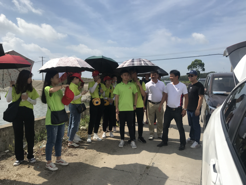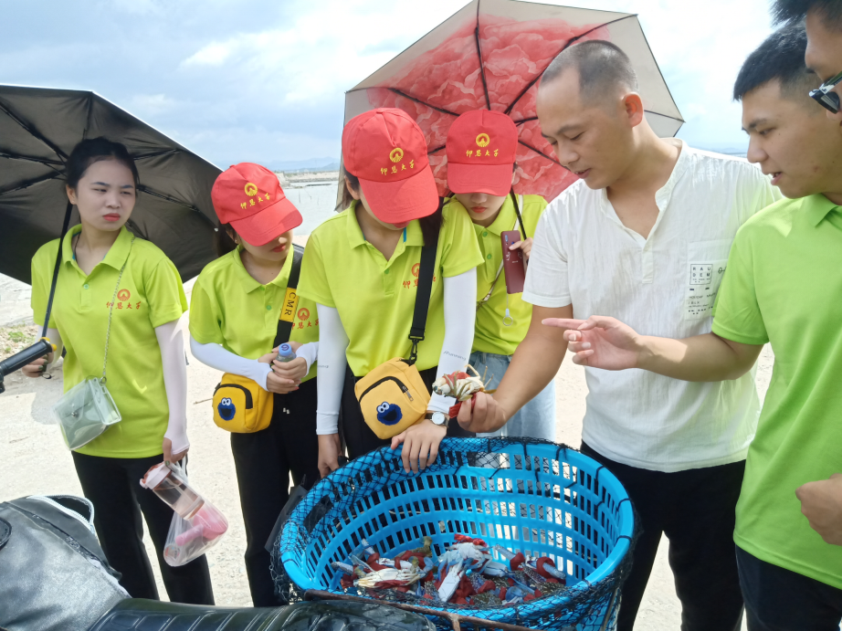 邱城村以海产著名,其中青蟹是邱城村主要海产。在邱城村村干部的带领下,实践队成员们参观了港口、海产养殖场、氧气池场等地,了解到邱城村船只维修年限、海产养殖情况、海产保鲜的方法。