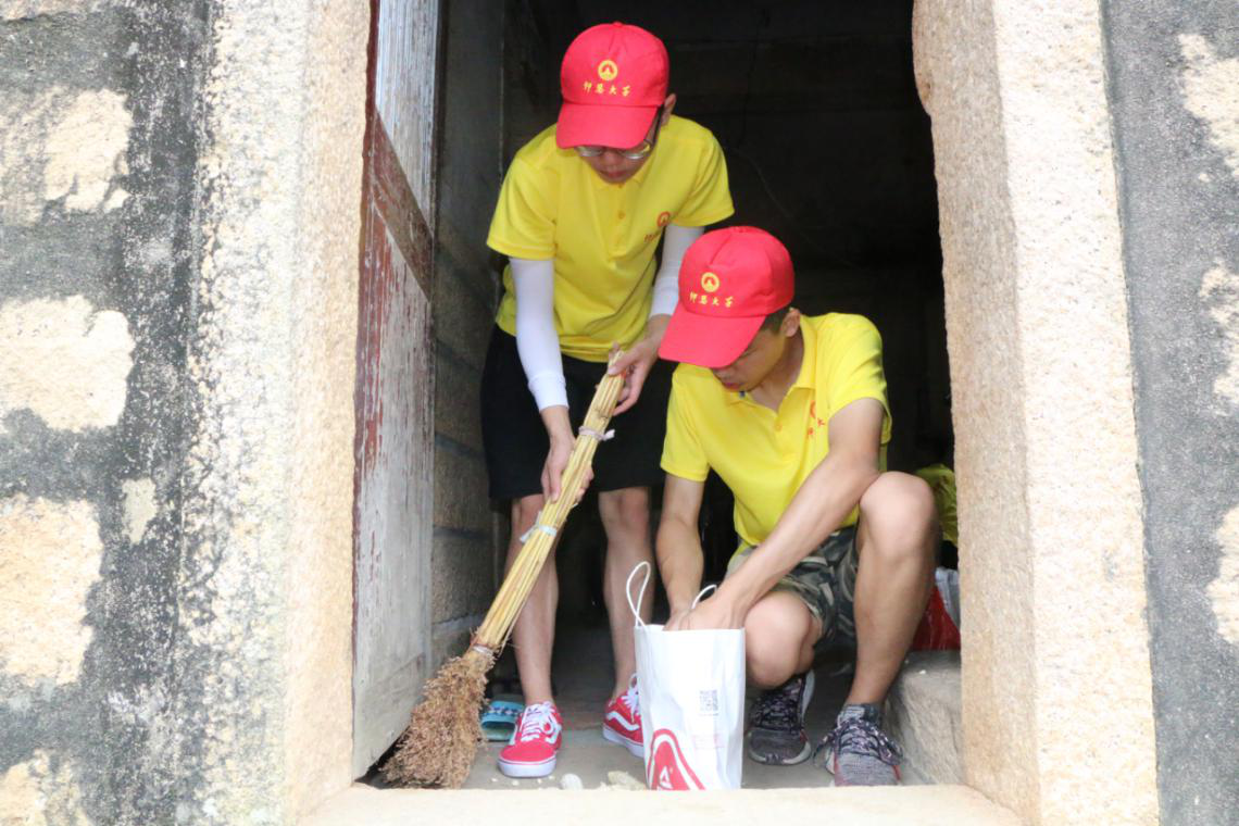(图为实践队员在打扫卫生)