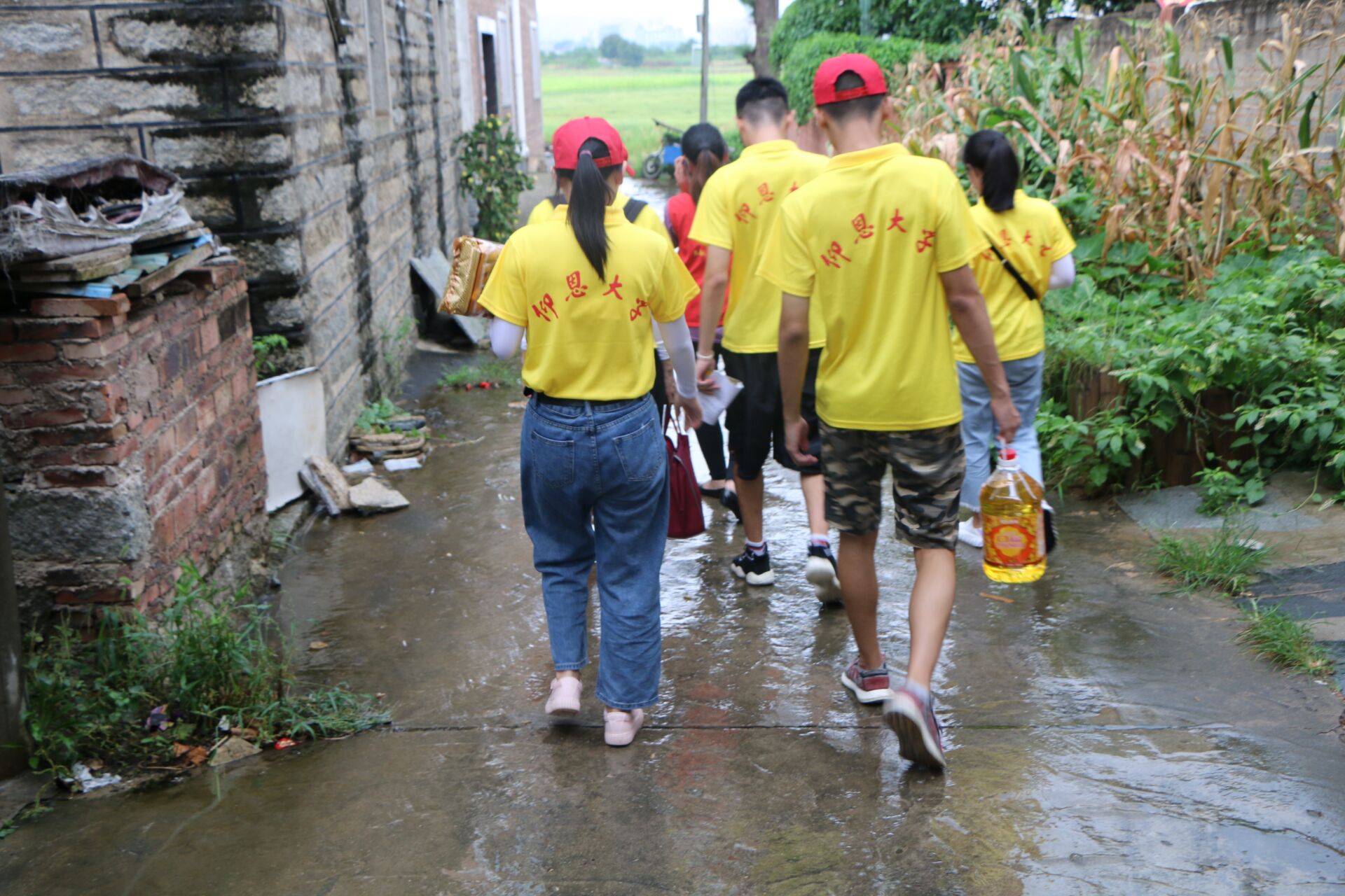 (图为实践队员搬运物资)