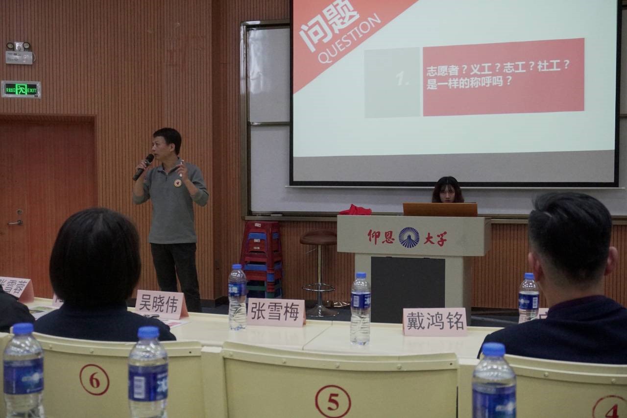 (图为爱心社社长戴鸿铭正在与观众们分享)