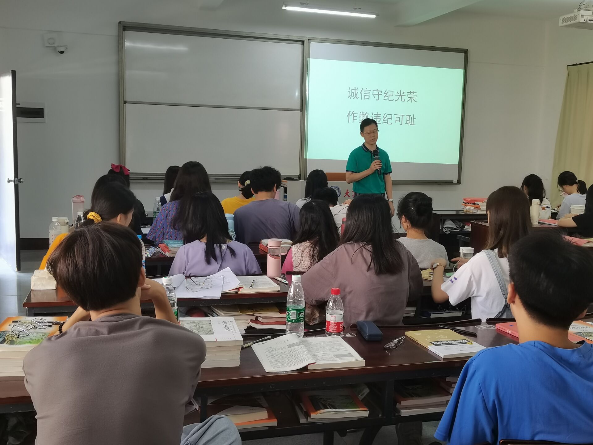 全国英语四六级考试将于9月19日举行,为严肃考风考纪,加强我院诚信教育,强化学生诚信参考意识,9月17日下午我院各班级于各班班会教室开展英语四六级考前“考风考纪诚信动员教育”主题班会。