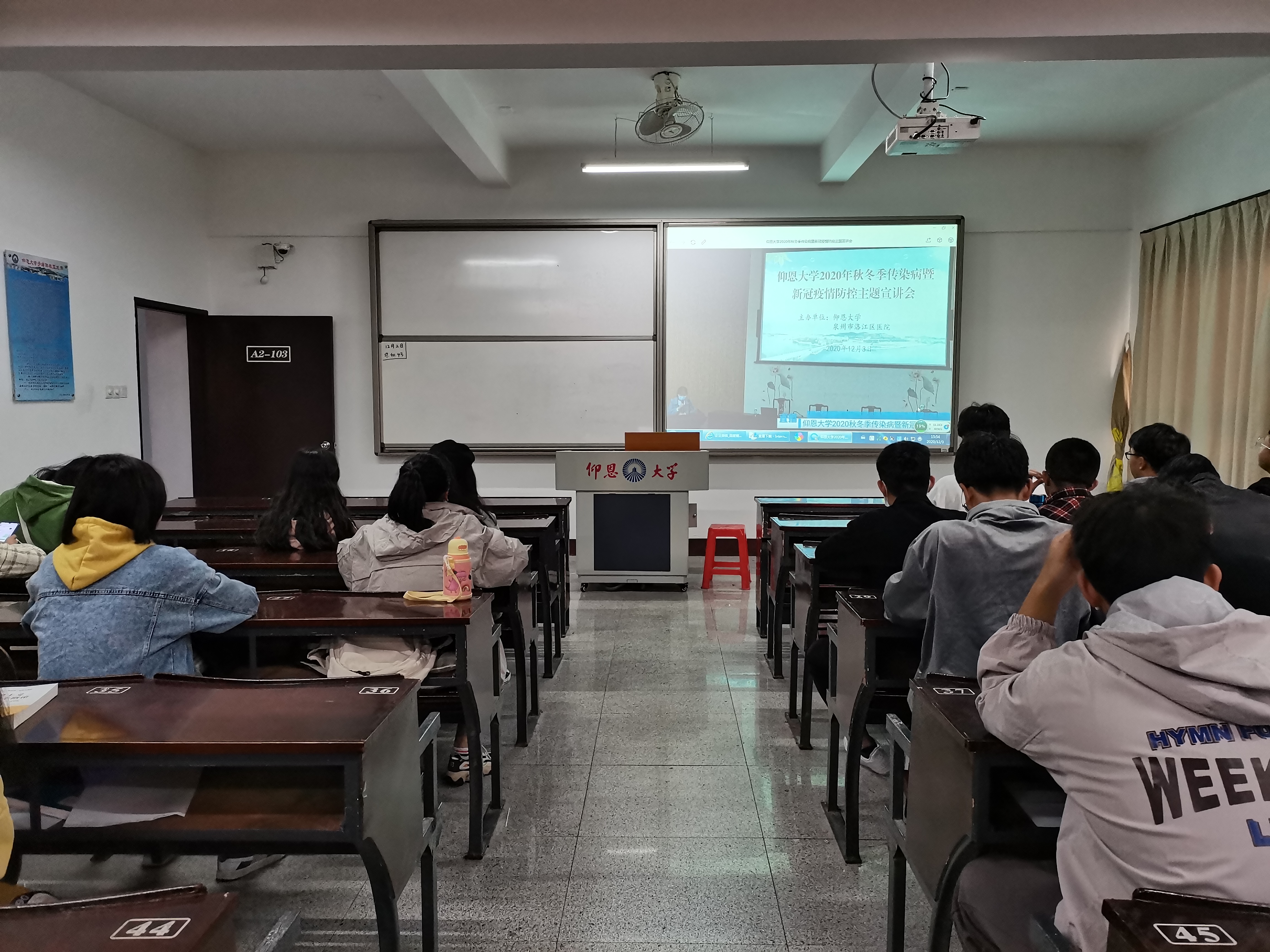 为了提高传染病预防水平,增强大学生传染病预防意识,2020年12月3日,由我校召开的“秋冬季传染病暨新冠疫情防控”主题班会于金融系、经济系、国际贸易与经济系各所在班级展开。本次班会由泉州市洛江区马甲镇医院医师主讲,参会人员为yl23455永利集团全体学生。