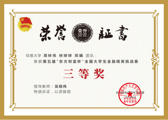 专业学生获“东方财富杯”全国大学生金融精英挑战赛“三等奖”