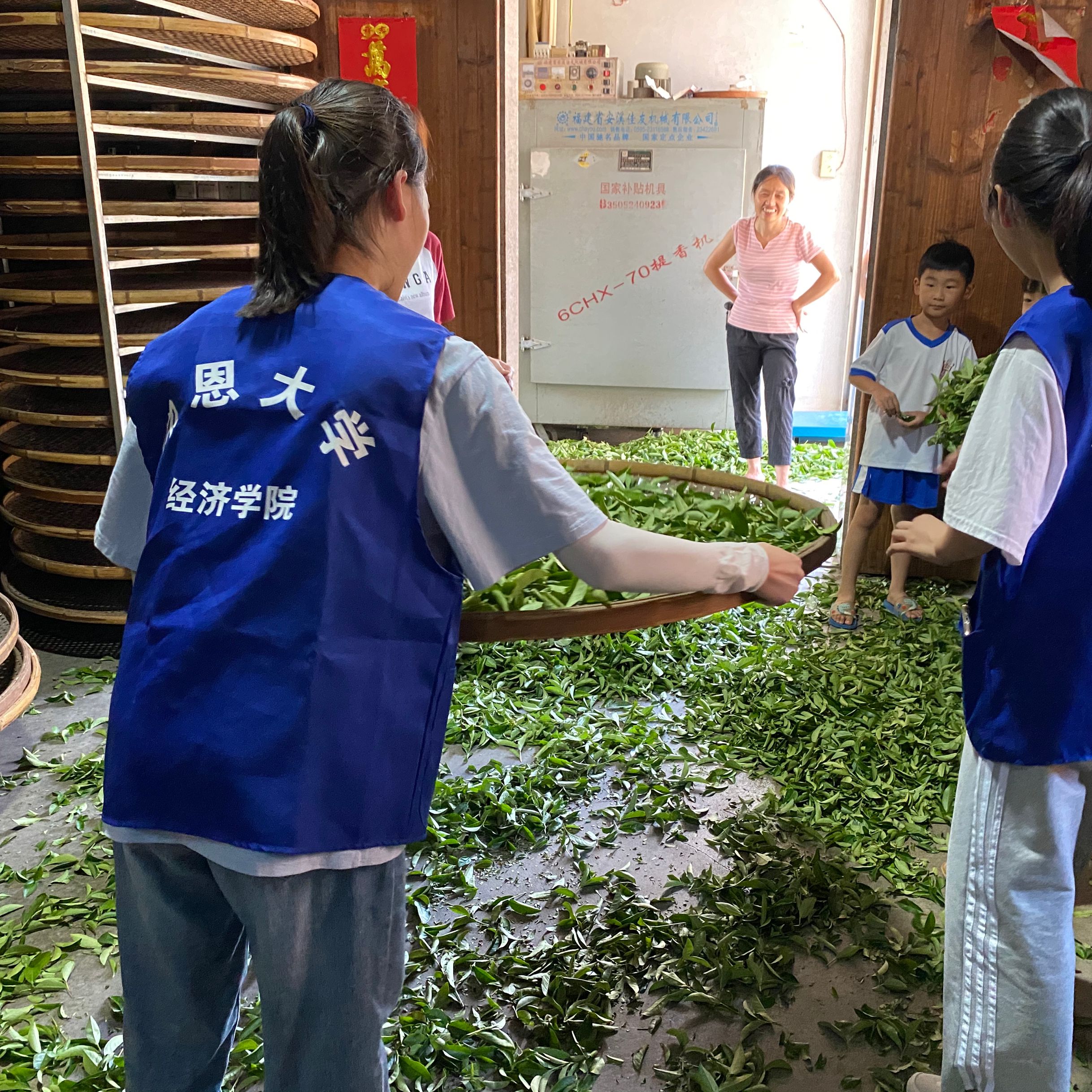 为开拓茶文化见识,传承茶文化,2021年7月29日,yl23455永利集团“勇敢牛牛猛猛冲”实践队前往安溪昌辉有机生态茶场体验制茶过程。