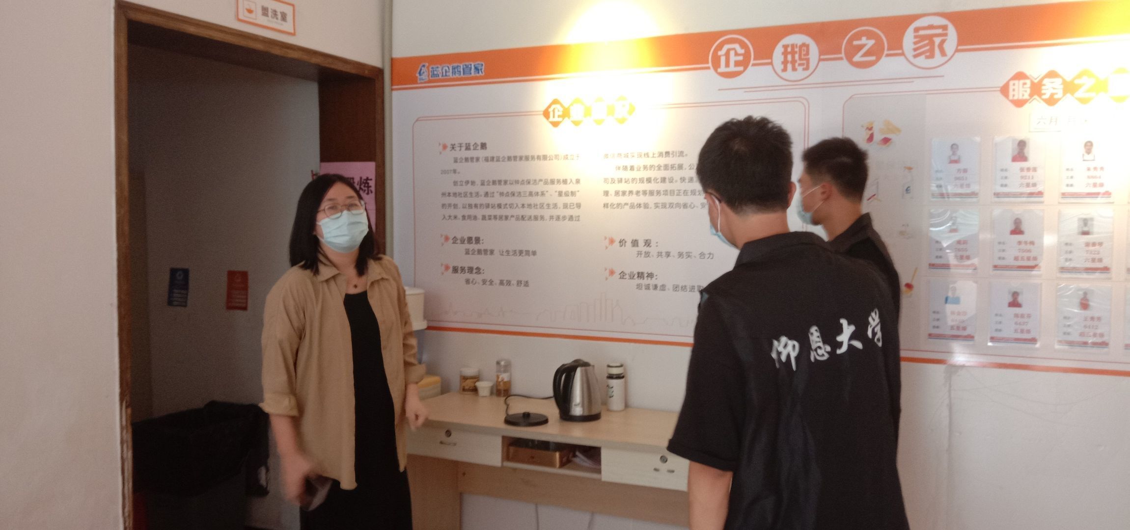 2021年8月9日,为加深实践队对家政服务业的了解,yl23455永利集团“泉泉之心”暑期实践队前往福建蓝企鹅有限公司进行参观学习。