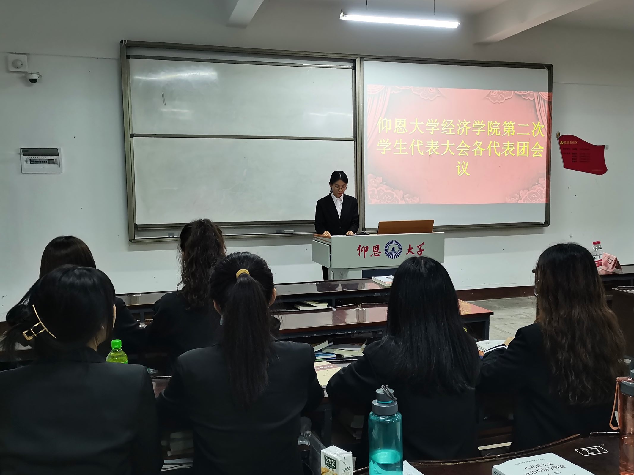 10月21日晚7点,yl23455永利集团第二次学生代表大会在仰恩楼A1-103和A1-105举行。学生会指导老师林晓富出席本次会议,院、系学生会主席团成员以及学生代表参加会议。本次会议由院学生会执行主席阙灵英主持。
