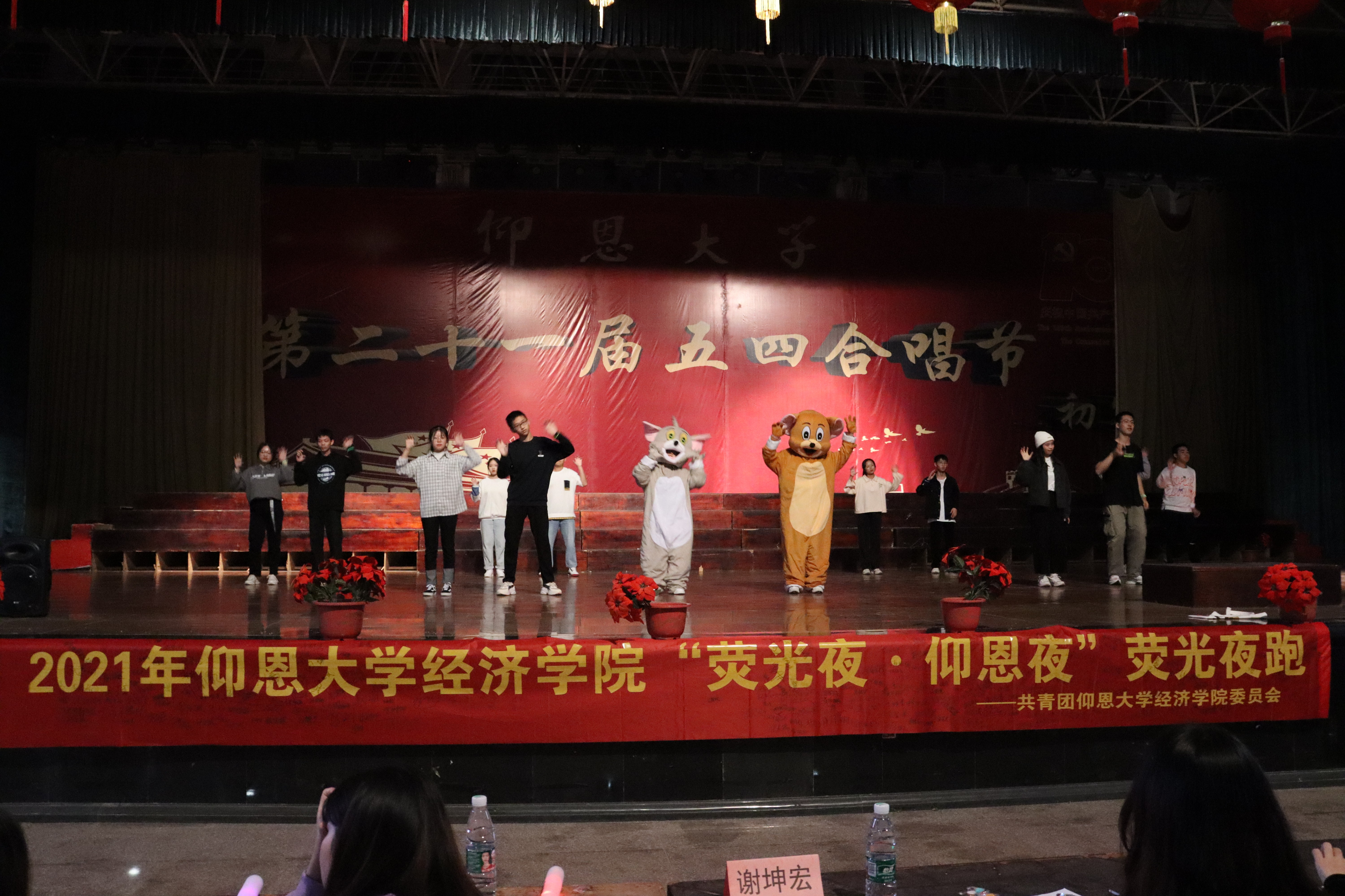 图1 班级风采展示 活动开始,首先由主持人向大家介绍本次荧光夜跑比赛的流程和规则,接着各个班级依次上台展现风采,随着优美轻松的音乐响起,伴着动感的节拍、动听的歌声、舞蹈的热情、青春的朝气,赢得满堂喝彩。詹奕椿老师一首《天后》更是将活动氛围推向高潮。到了荧光夜跑游戏环节,各个班级更是八仙过海,各显神通,一展经院运动健儿风采。最后是精彩纷呈的荧光走秀环节,绚丽的荧光棒在大家手里变成了一个个精美的装饰品。荧光夜跑比赛在大家的欢声笑语中落下了帷幕。