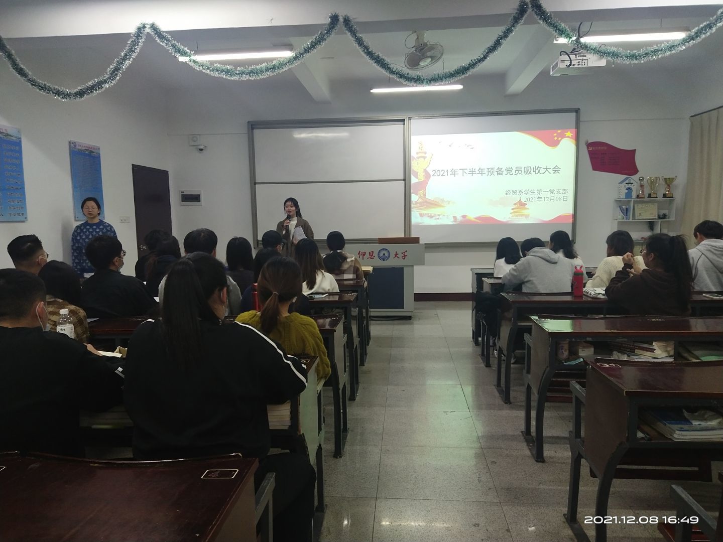 2021年12月8日下午16:30,经贸系学生第一党支部于仰恩楼B2-205召开了预备党员接收大会。参加本次会议的有经贸系学生第一党支部全体党员及积极分子。