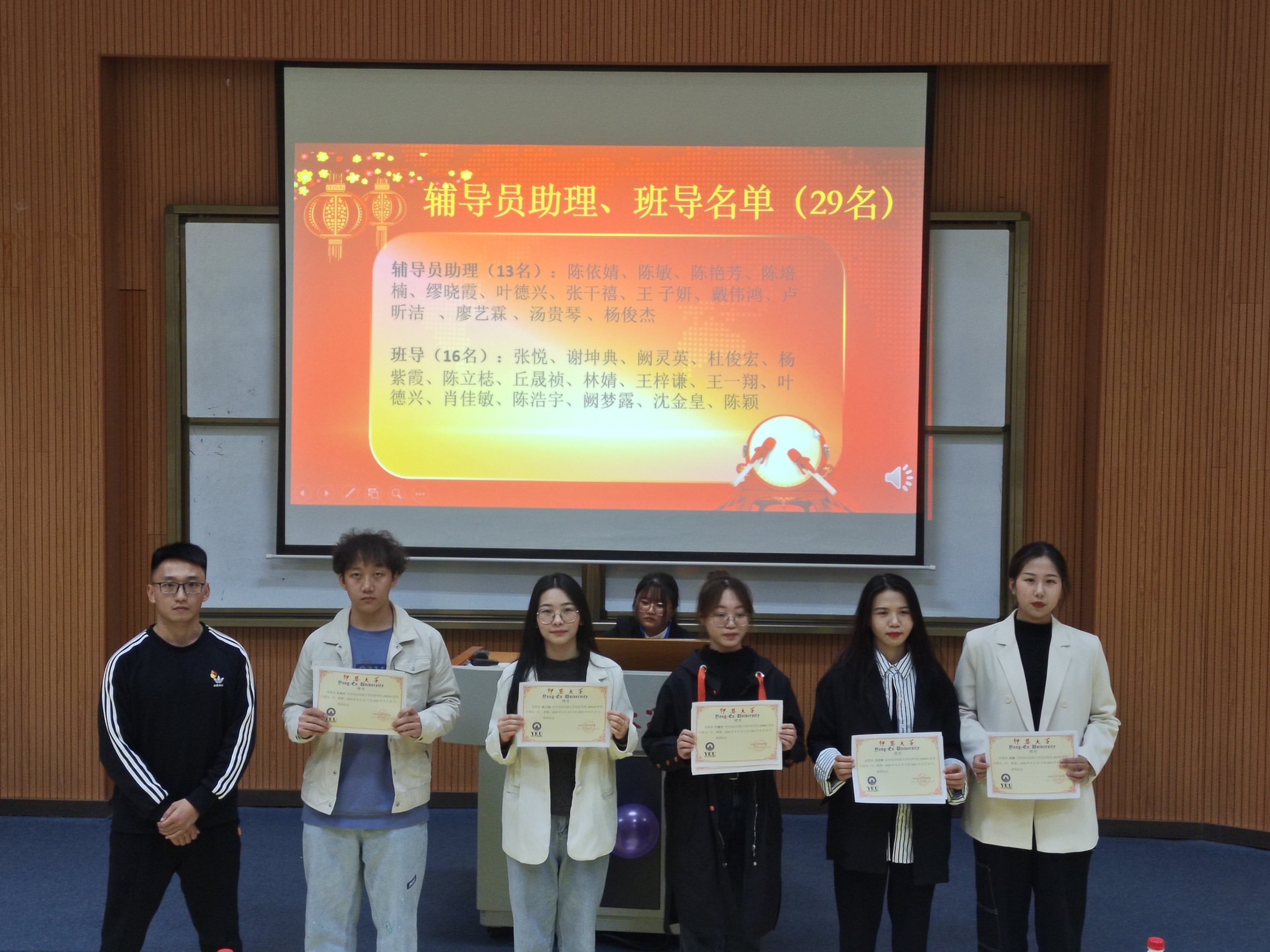 图2 为学生进行颁奖 此次班级风采大赛暨表彰大会旨在增强班级凝聚力和促进各班级间的交流,丰富学生的课余生活,推动我院的精神文明建设,营造了积极昂扬的学院新风气。并希望借由表彰大会的召开,激励yl23455永利集团学子再接再厉,发扬经院学子的优良作风,展现经院的绚丽青春。最后,由林晓富老师总结致辞,此次yl23455永利集团风采大赛暨表彰大会就此落下帷幕。(yl23455永利集团学生会/图文 审核:黄培真)