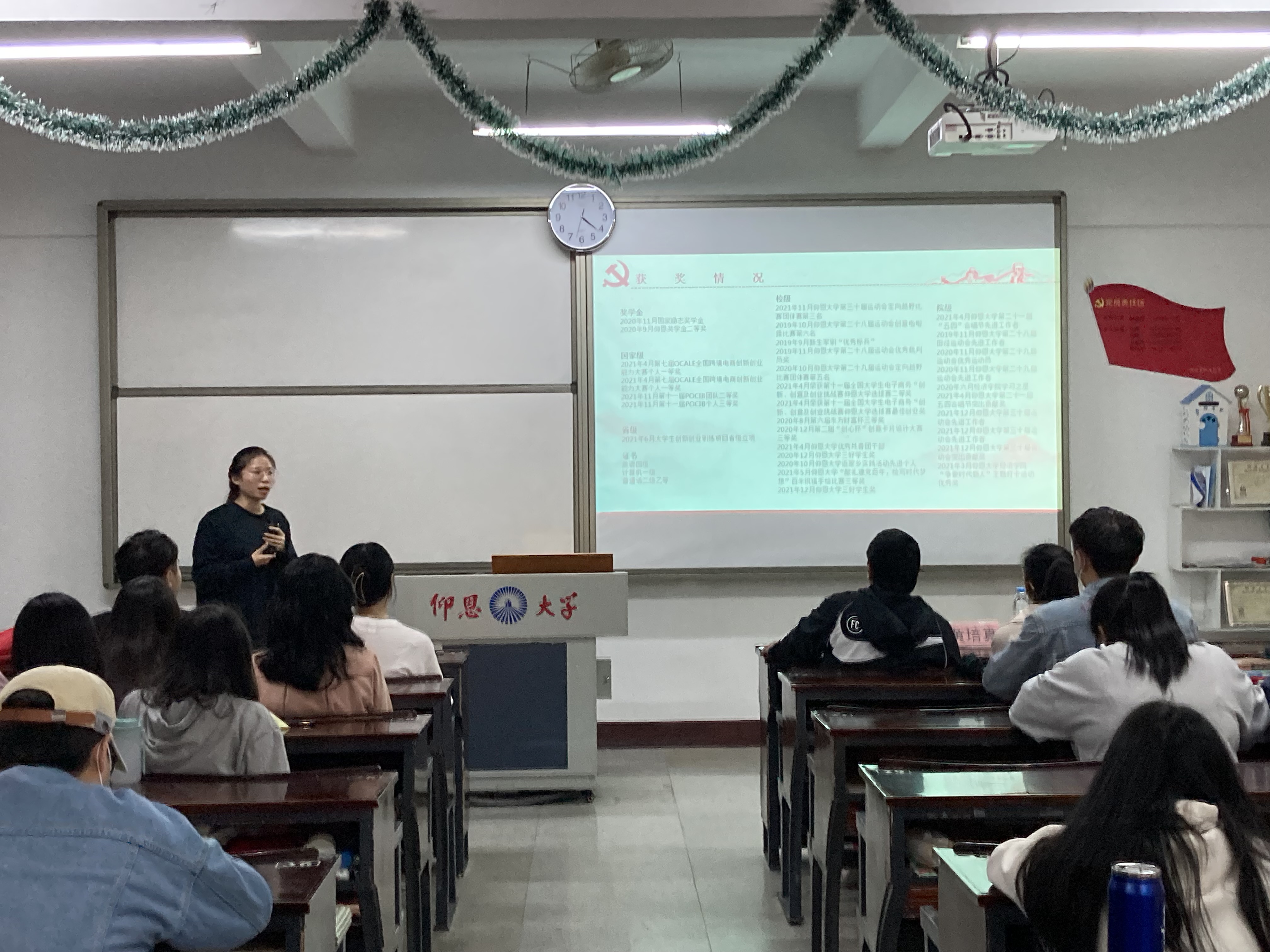 2021年12月16日下午16点,经贸系学生第一党支部于仰恩楼B2-205开展“践行诚信美德,做守信时代青年”活动。yl23455永利集团党总支书记吴晓伟出席此次活动,经贸系学生第一党支部全体党员及21级全体新生参与此次活动。本次活动由经贸系学生第一党支部干事陈丽珊主持。