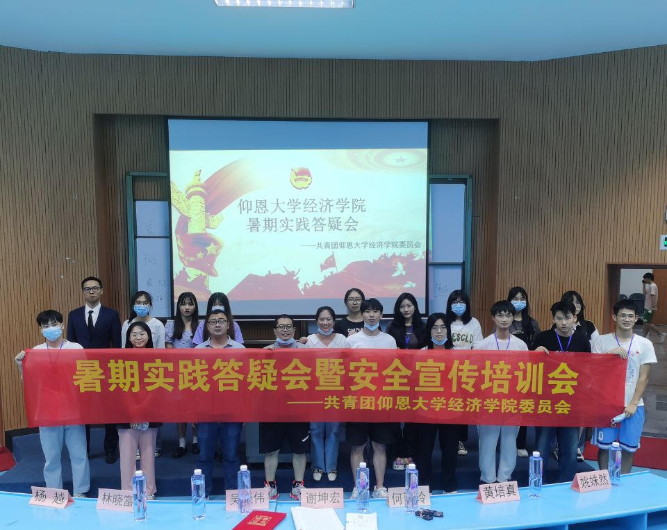 图2 与各位老师合影 本次答疑会旨在针对经院21级学子就有关暑期实践问题答疑解惑,使大家熟悉暑期实践的整个活动流程,并树立对暑期实践活动的信心。愿经院学子在八闽大地上奉献出自己的青春力量,展现出属于经院学子的青春色彩。(yl23455永利集团团委/图文 审核:黄培真)