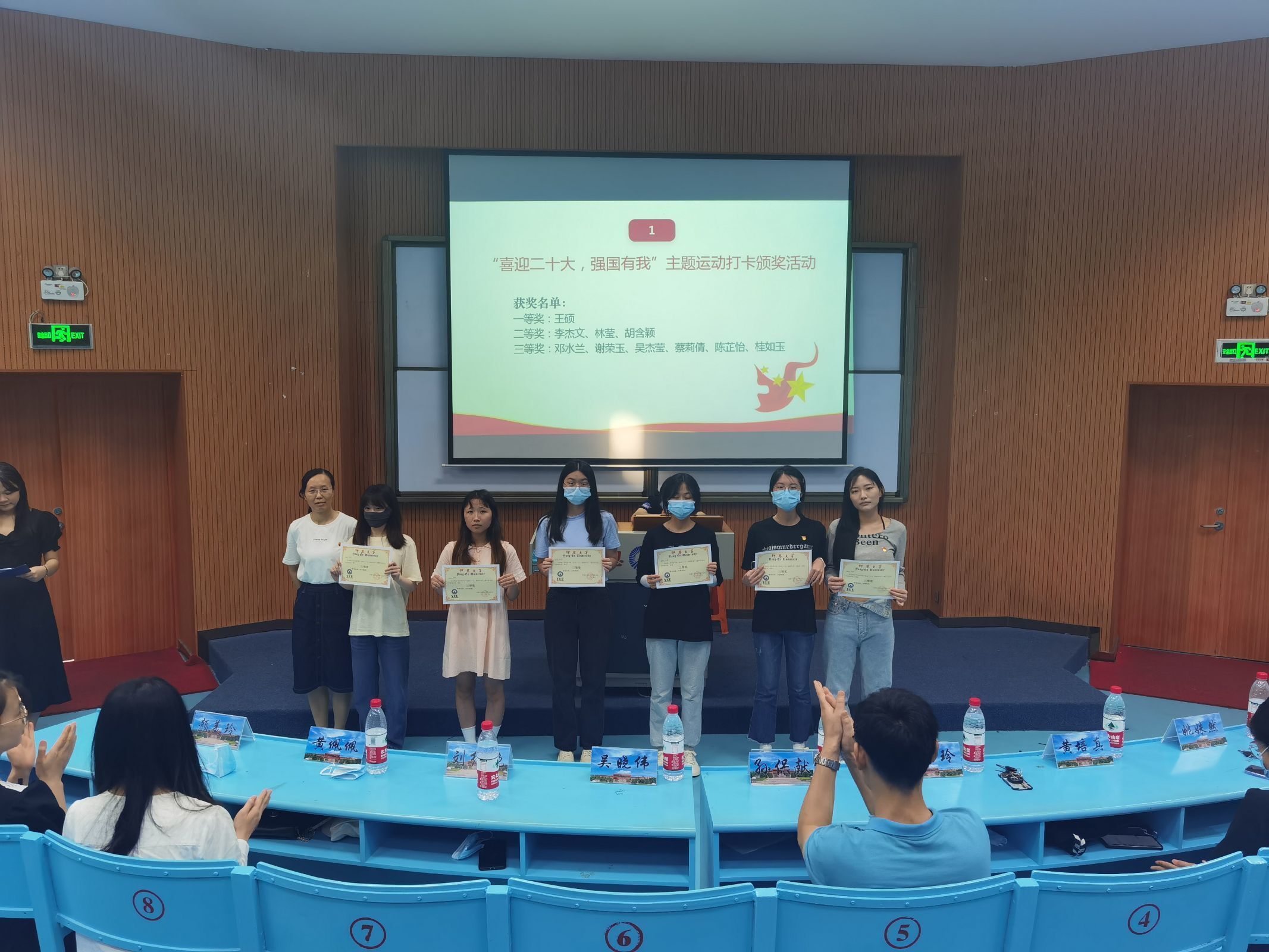图2 yl23455永利集团党总支对参与活动学生进行表彰 值此“七一”前夕,为延续并营造运动氛围,鼓励经院学子坚持锻炼,yl23455永利集团党总支于2022年6月28日下午于海纳讲堂举办了“喜迎二十大,强国有我”主题运动打卡活动表彰大会,对积极并坚持参与此次运动打卡活动的经院学子进行表彰。
