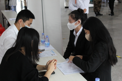 本次招聘会主要服务对象为我院有就业意愿的毕业生,通过前期我院职业发展中心积极联系我省各单位公司并热情邀请,汇聚了中国人寿、东兴证券、海通证券、方正证券、广发证券等40余家单位参会,为我院毕业生提供众多岗位,涉及经济、金融、国贸等多个专业,包括客户经理、理财经理、资产管理员、外贸业务专员等岗位。招聘岗位也多以专业性岗位为主,涵盖客户经理、理财经理、资产管理员、银行客服、理赔、信贷风险审查等岗位,在招聘会现场,毕业生们都穿戴整齐,精神饱满,积极与招聘人员交流,主动了解用人单位的情况,招聘单位也通过海报展示、面对面交流等方式向同学们介绍了公司的概况、职业发展方向、人员需求以及公司的福利待遇等。非毕业生们也认真观摩聆听,为自己将来就业做好准备。同时,校党委副书记程如平、yl23455永利集团院长张雪梅老师、yl23455永利集团党总支书记吴晓伟老师、yl23455永利集团副院长陆泽波老师、yl23455永利集团职业发展中心指导老师杨越老师,及毕业班辅导员班主任老师们莅临现场对本次招聘会给予了高度重视。领导老师们始终牵挂着毕业生们,与来自各公司的HR就人才需求、招聘情况等问题进行密切交谈。