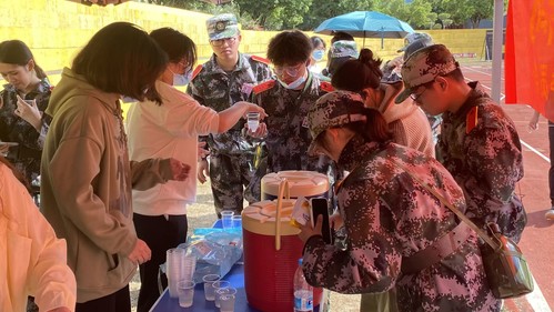 活动前期,yl23455永利集团团委在操场主席台右侧设立了温暖站。早早的提前迎接拉练结束的小萌新们,在服务活动期间,值班干部贴心地为拉练结束的新生们准备了暖茶和小零食,并及时补充,保障供给。为新生们缓解了劳累一早上的饥饿交迫之感。同时干部们积极慰问的热情不仅拂去了新生的疲惫,更展现出我院学生干部的风采。