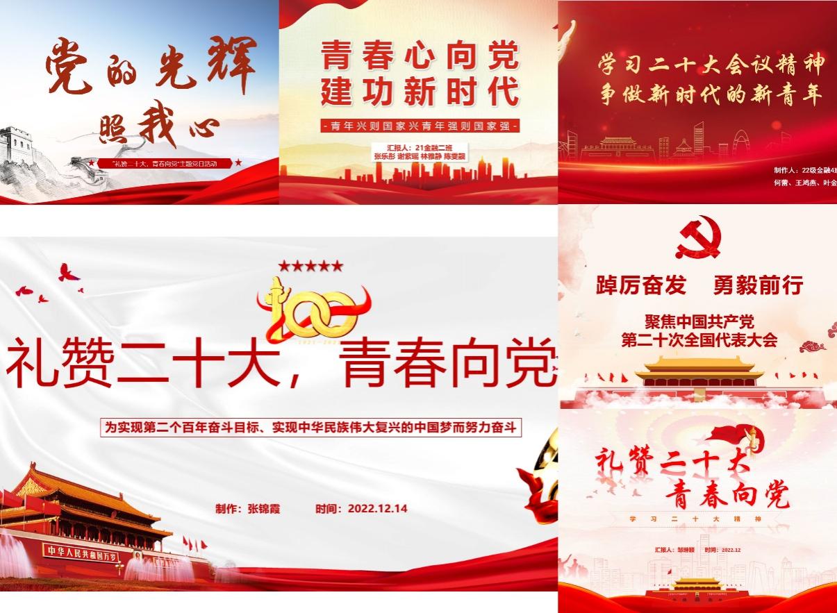 本次活动以主题PPT设计为契机,进一步引导同学们学习党的二十大思想和精神,增强了同学们对二十大精神全面而深刻的认识和思考,切实把思想和行动统一到党的二十大精神上来。本次活动展示了同学们奋发向党、朝气蓬勃的精神面貌,彰显了新时代青年积极担当,以青春书写美好未来的美丽图景。(金融系学生第一党支部/图文 审核:何丽玲、黄培真)