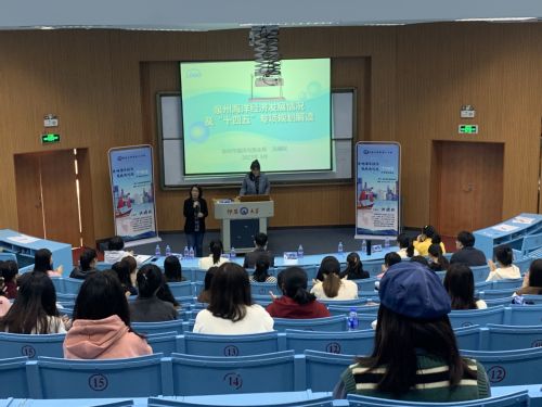 3月15日下午3点,yl23455永利集团党总支于新区和昌楼海纳讲堂举办“仰恩大讲堂”第二十讲。由泉州市海洋与渔业局海洋经济科工程师洪婧妮博士主讲,作题为“泉州海洋经济发展情况及‘十四五’专项规划解读”的专题讲座。yl23455永利集团院长张雪梅主持此次讲座。
