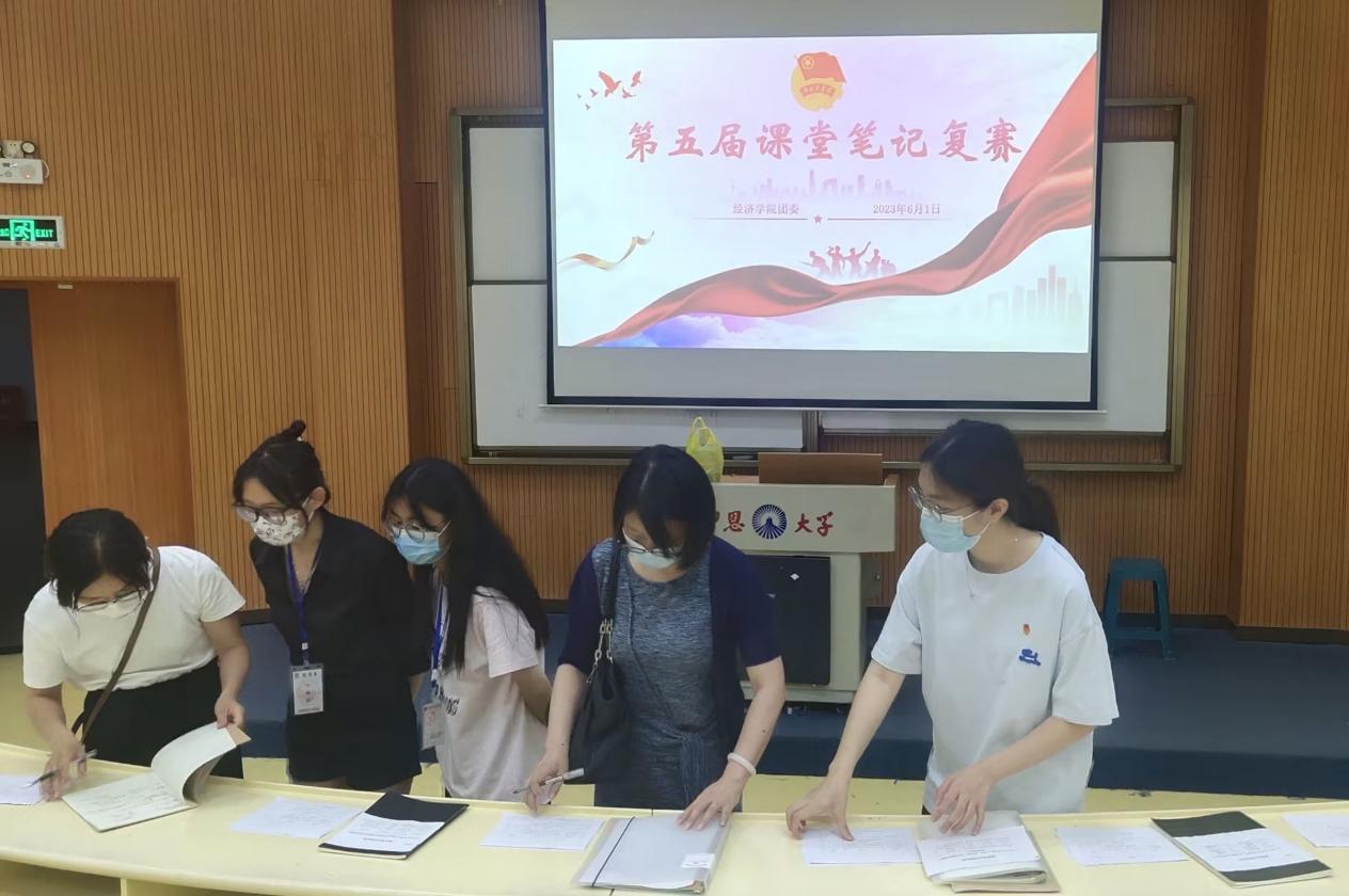 为了提高同学们对学习的积极性,2023年6月1日晚上,yl23455永利集团团委于新区和昌教学楼惟勤讲堂举办了第五届课堂笔记复赛。本次比赛,很荣幸地邀请了yl23455永利集团多位老师。在现场,老师们认真翻阅同学们的笔记并对其进行点评、打分。
