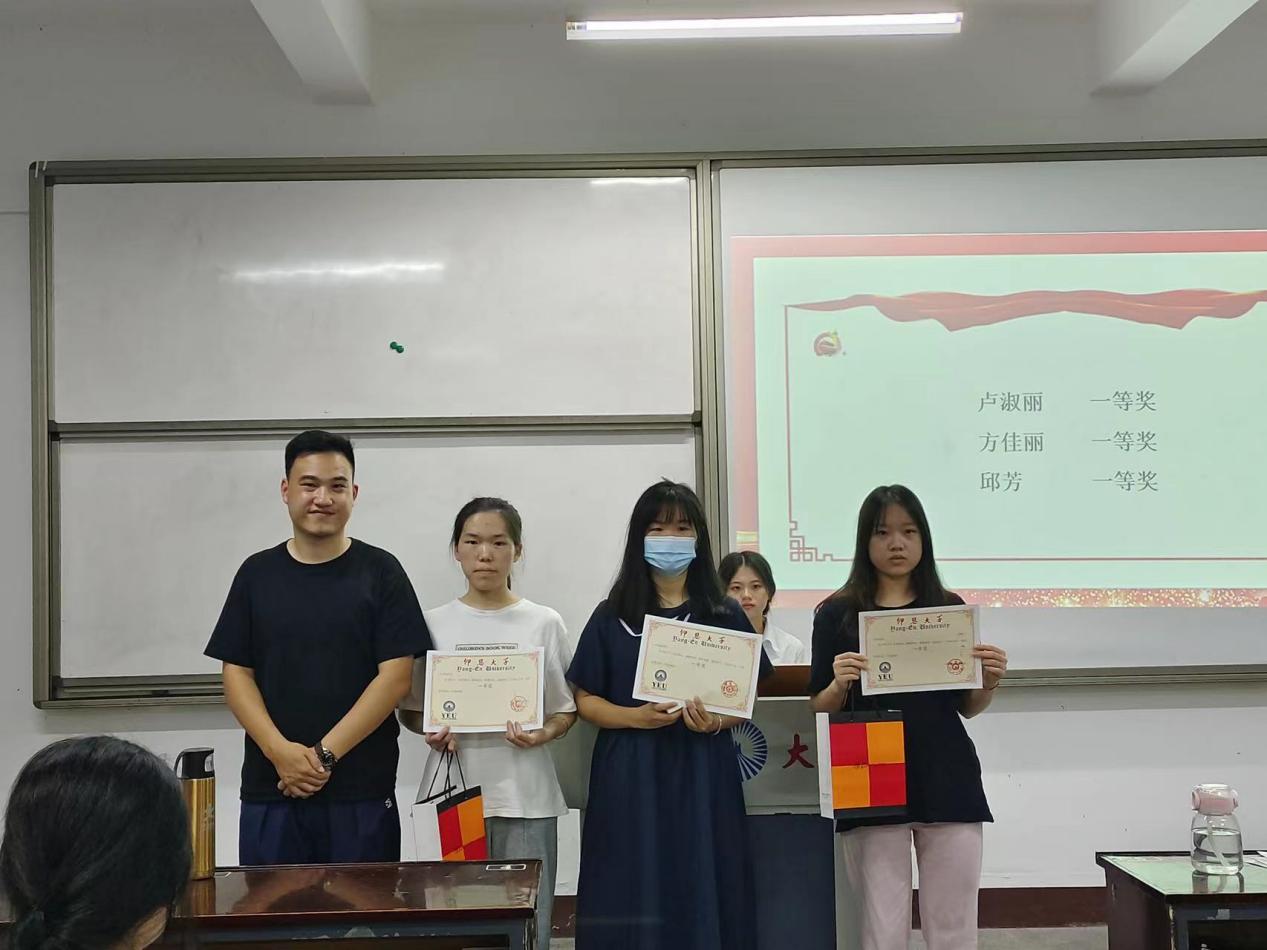 活动伊始,由主持人致开幕词并公布本次征文比赛获奖名单,由林烽老师为获奖学子颁发奖状,接着,本次征文活动一等奖获得者兼我院国家励志奖学金获得者卢淑丽同学发表自己的感言,并表示自己定不负老师和国家的期望,树立远大志向与理想,回报学校和社会。最后,林烽老师指出:希望我院学子都能够以所有获奖同学为榜样,培养克服困难的能力,学会感恩他人、感恩社会,志存高远,脚踏实地;感恩青春,砥砺前行!