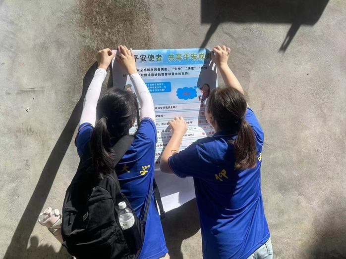 图1 实践队队员张贴海报,助力乡内建设