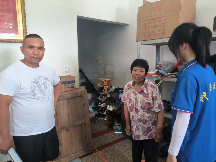 图2 实践队员与水门村书记陈祖林回访受助群体