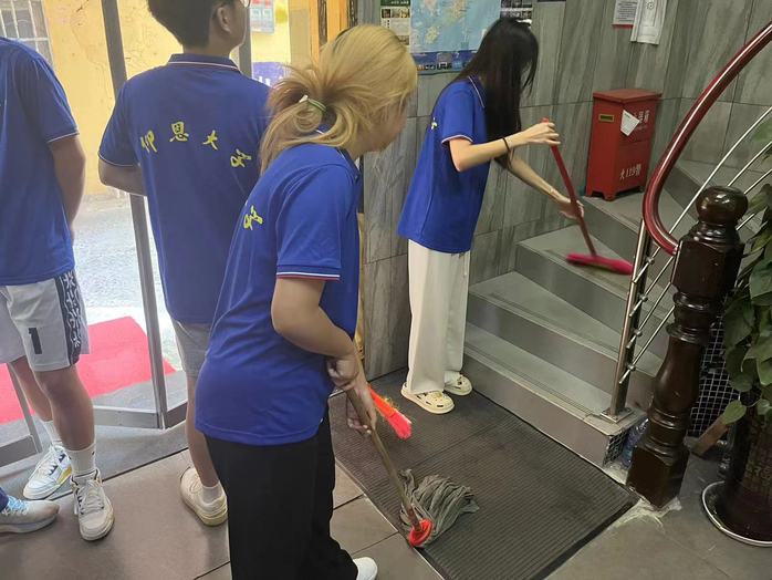 图2 实践队员对楼道杂物及卫生死角进行清理