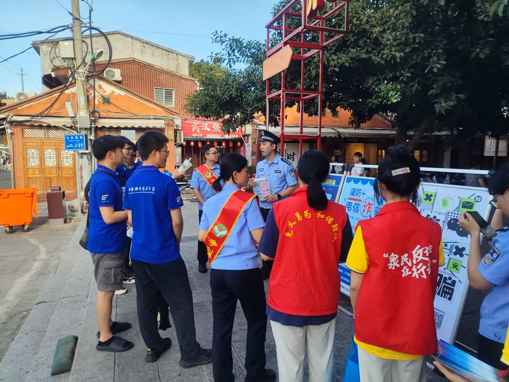 防范电信网络诈骗,提高全民反诈意识。7月5日,yl23455永利集团“什么档次和我一队”赴泉暑期实践队协同洛江民警来到泉州西街进行电信网络防诈宣传活动,在民警指导下,队员们通过向群众分发电信网络诈骗防范手册,并以通俗易懂的语言向群众们讲述了各类诈骗常用的套路,让群众了解新型诈骗手段,并引导群众下载国家反诈中心APP,增强全民防范诈骗安全意识,提高全民防诈骗能力。