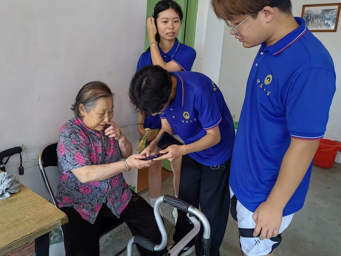 图4 实践队员帮老人解决手机使用困难问题