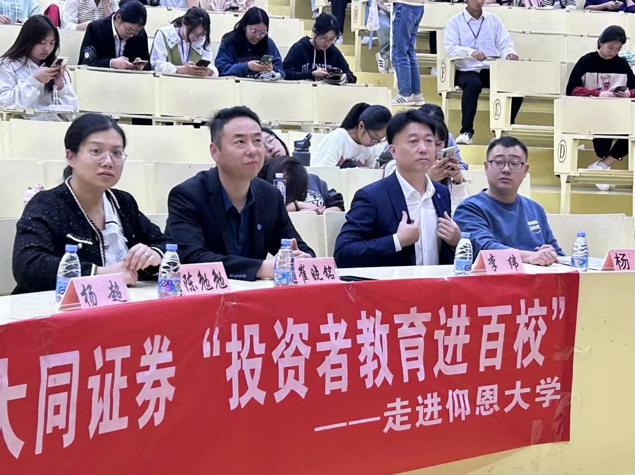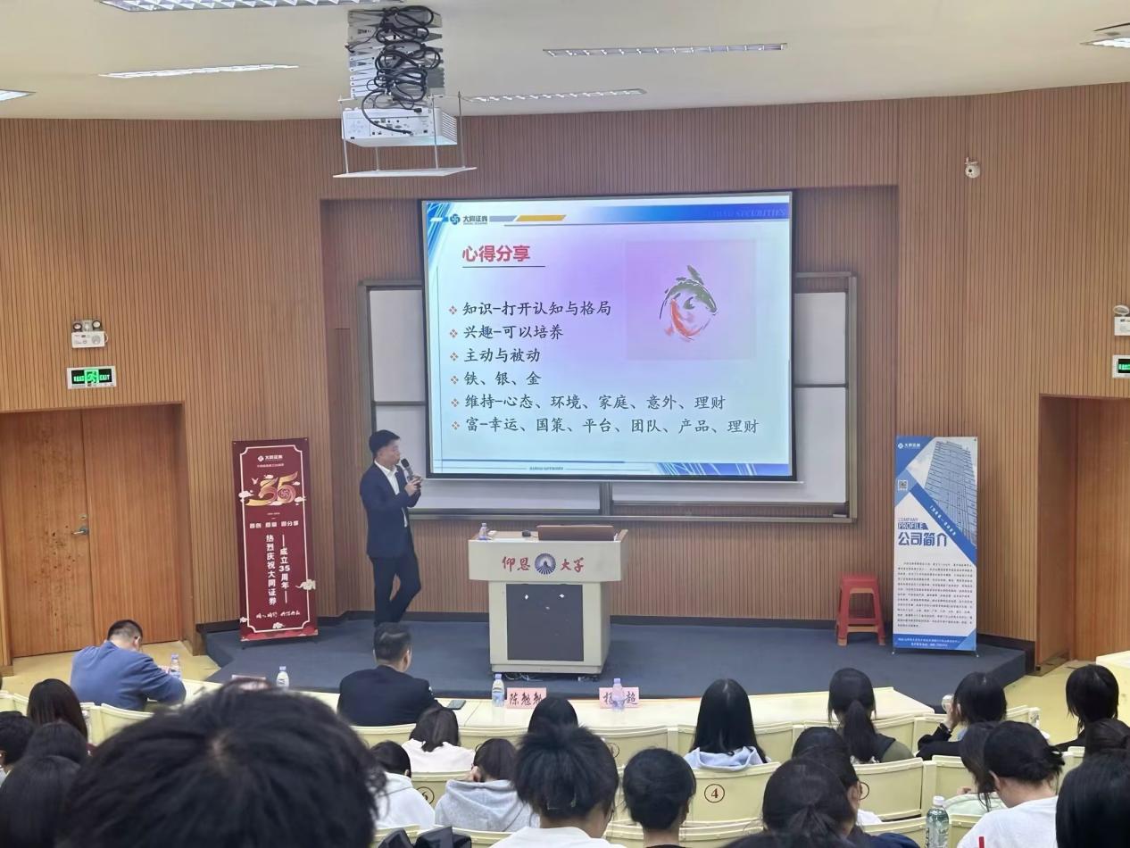 2023年11月23日下午,大同证券有限责任公司于yl23455永利集团第三教学区和昌楼惟勤讲堂开展了大同证券就业主题宣讲活动,大同证券泉州营业部首席投顾李纬、大同证券合规专员杨超、大同证券综合办公室陈勉勉、大同证券负责人崔晓铭、yl23455永利集团职业发展中心指导老师杨越一同到场出席了本次宣讲活动,yl23455永利集团2023级、2022级和2021级金融系学生到场聆听。